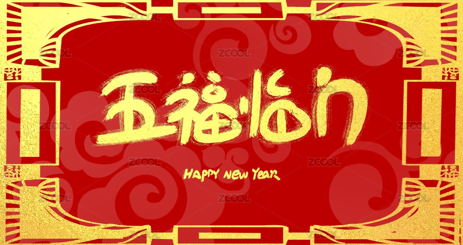 红色背景喜庆新年春节艺术字手写
