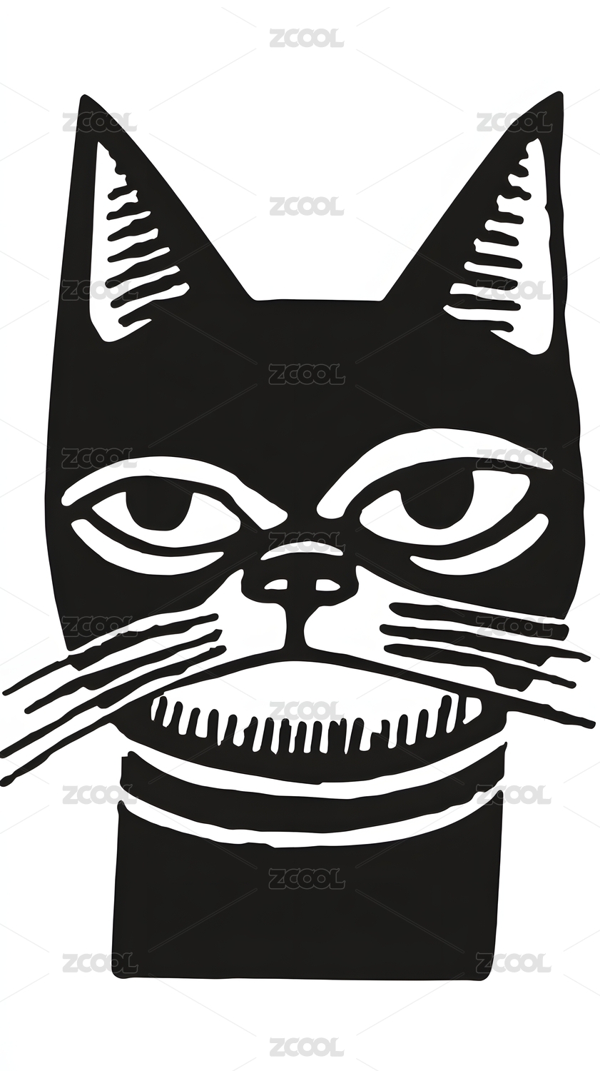 潮流,古装,猫,英勇,葫芦,黑白,线条,武力,侠士,古风