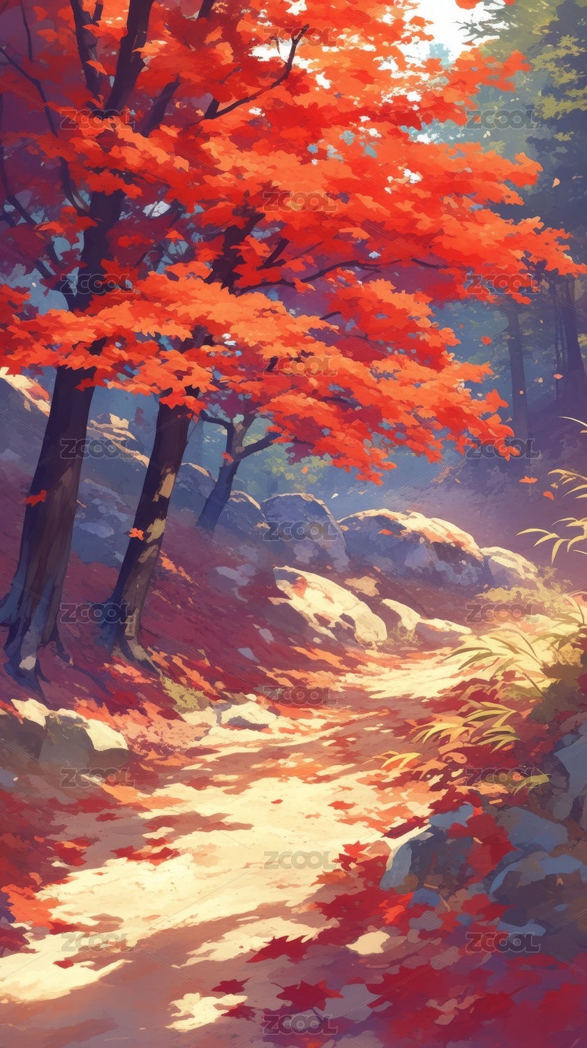 秋林小径风景画
