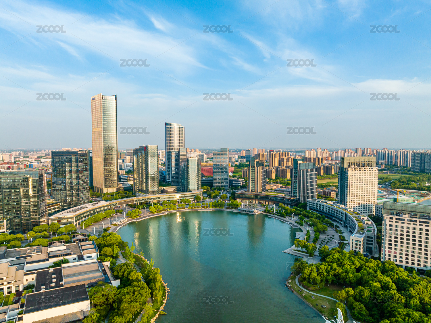 中国上海市嘉定新城航拍风景