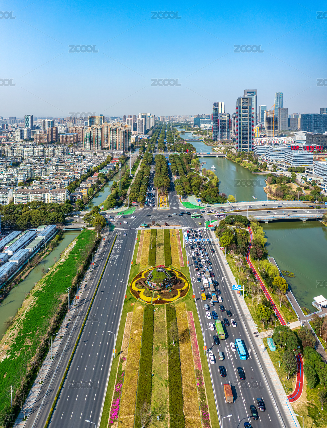 航拍昆山南北主干道长江路