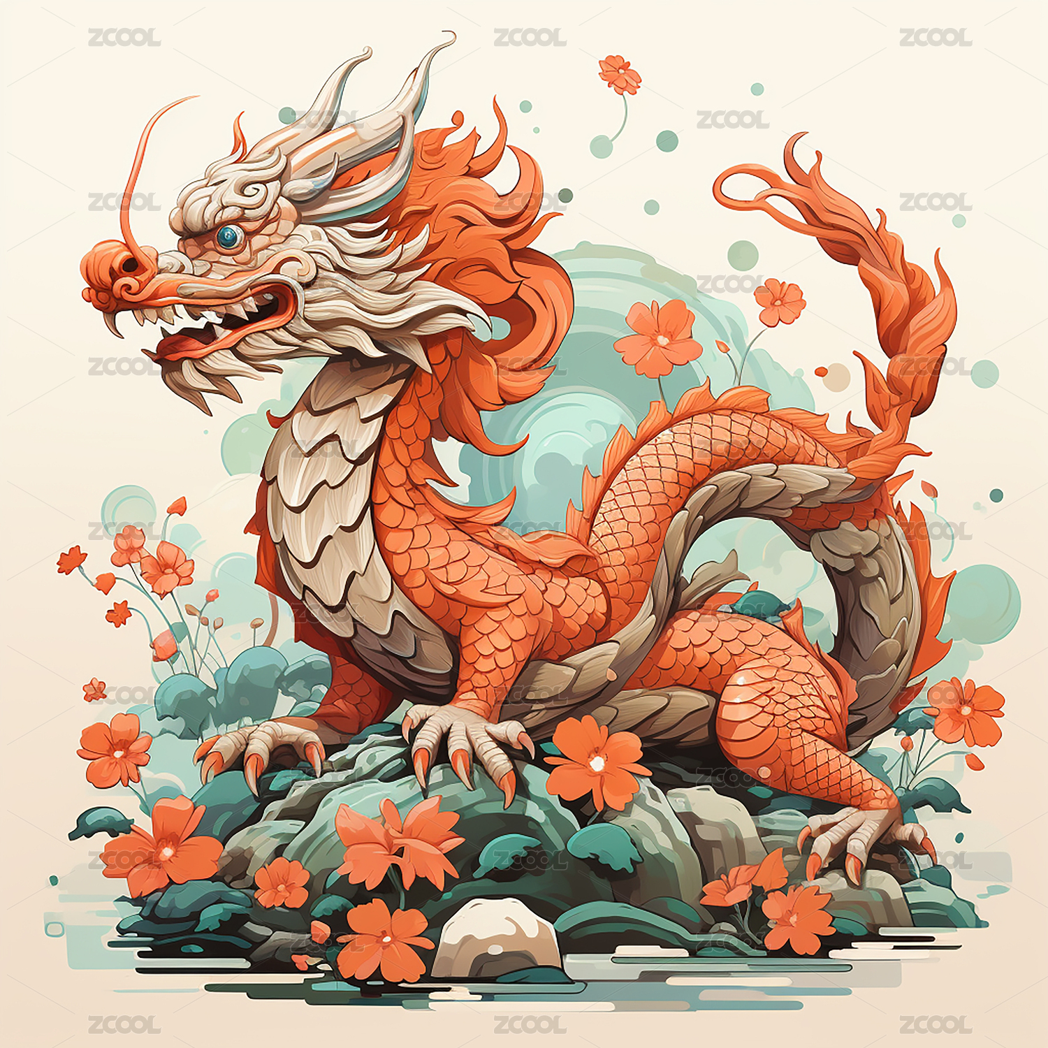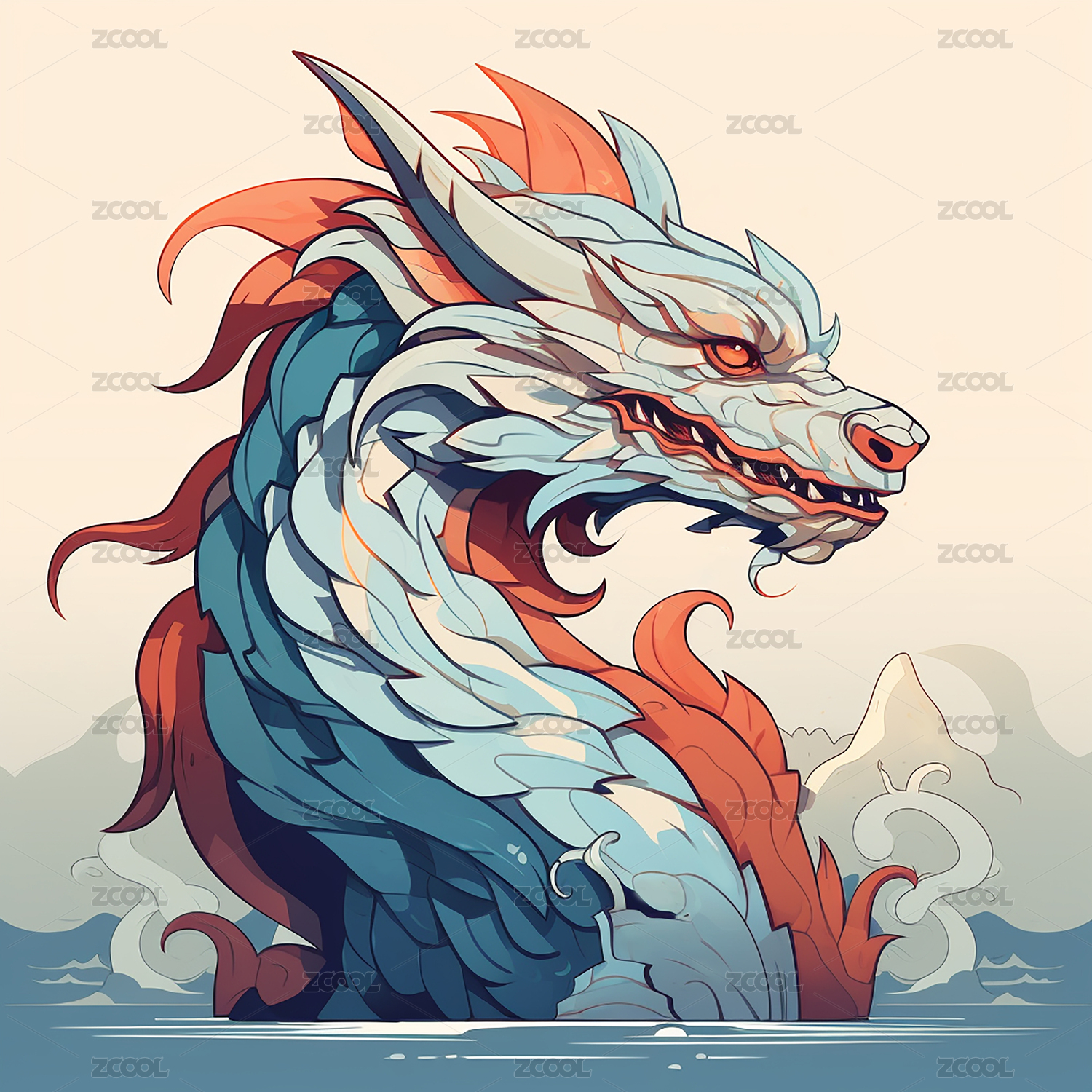 龙头,龙,动物,卡通,生肖龙,多彩,咆哮,中式美学