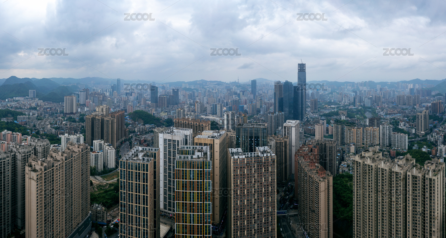 中国贵州贵阳花果园密集高楼建筑全景图航拍