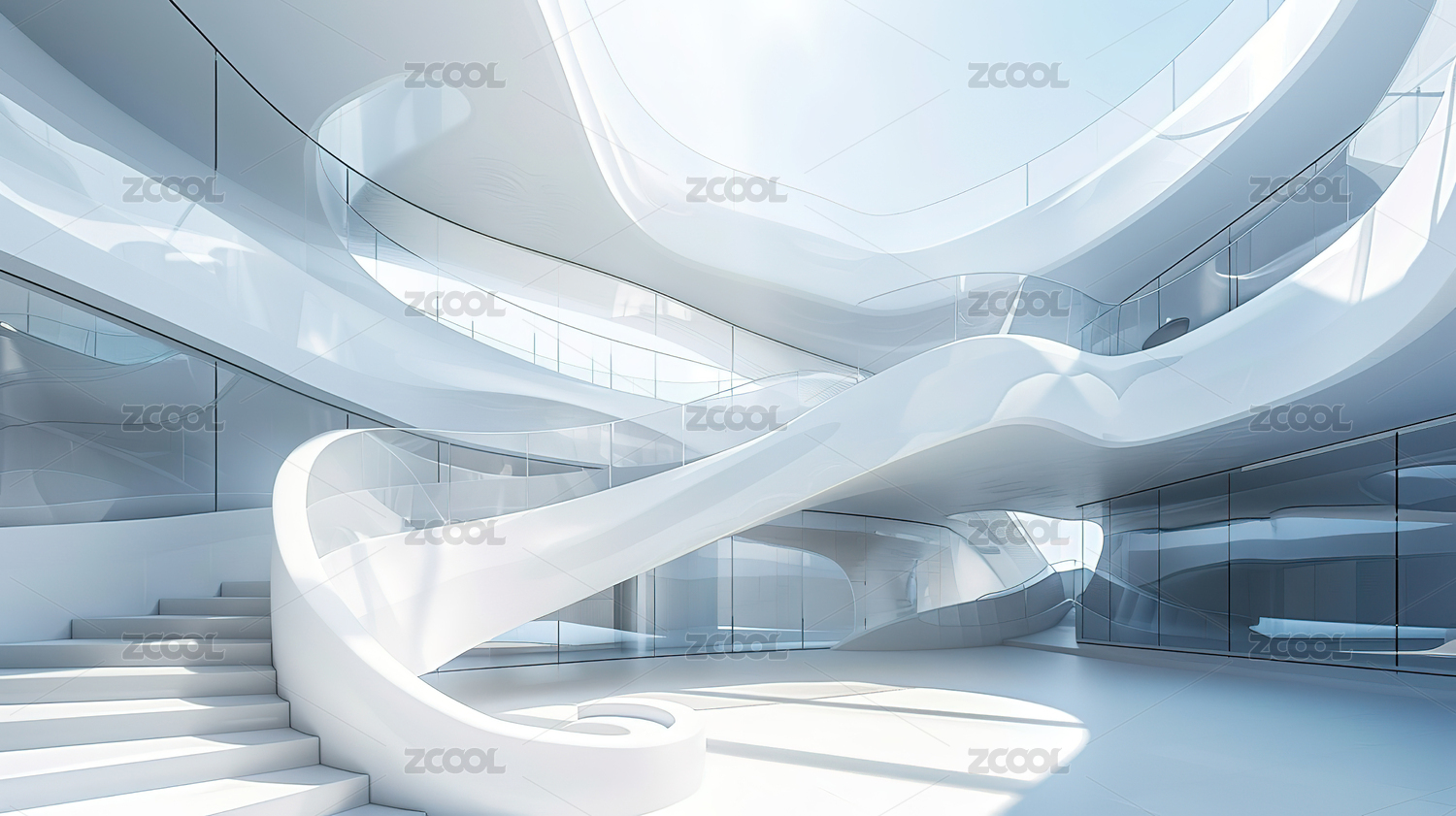 未来,建筑,内部,空间,设计,结构,光线,阴影,曲线,楼梯