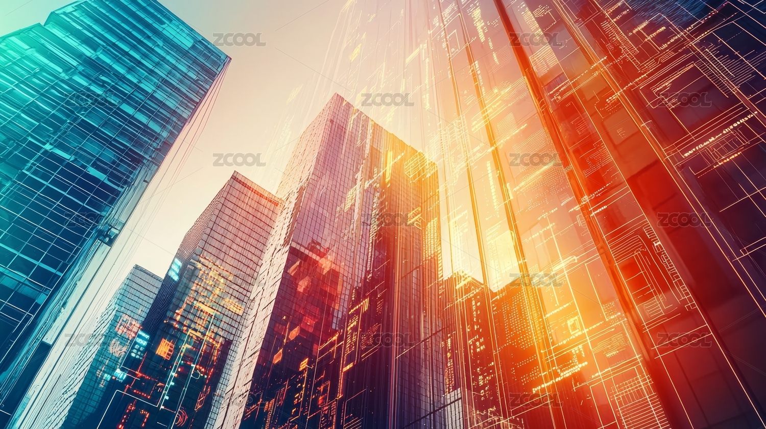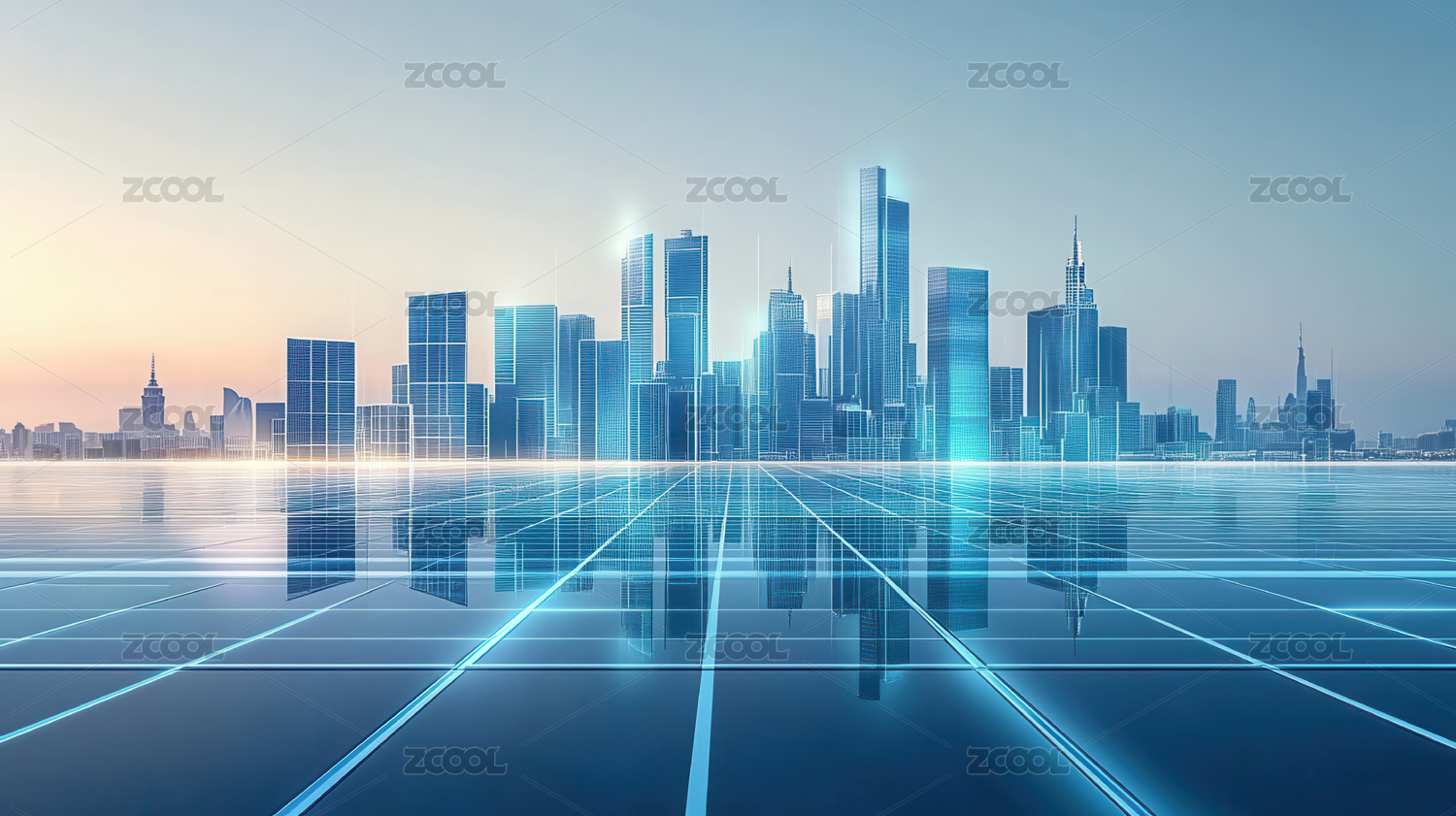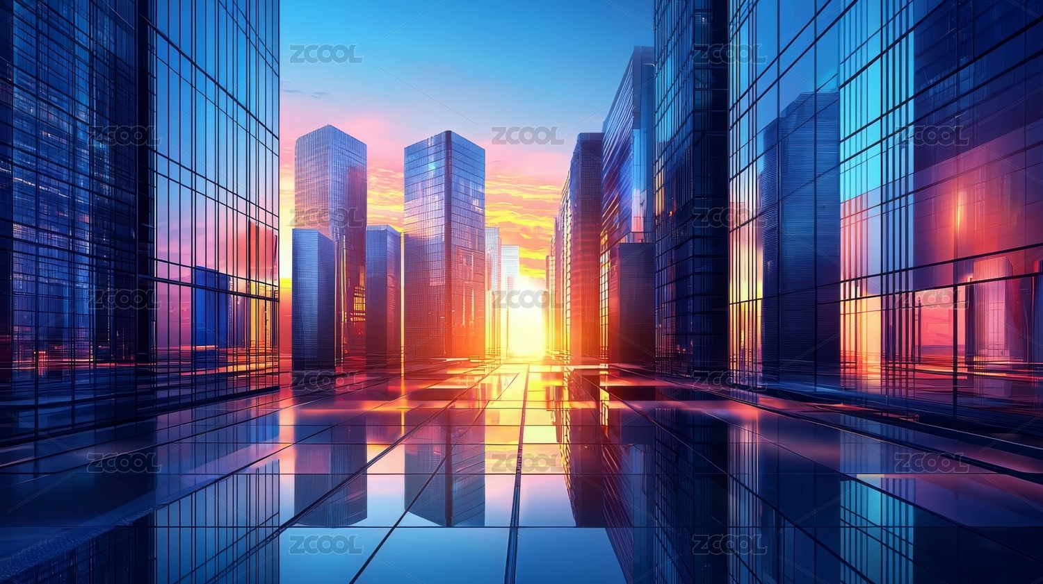 未来,城市,建筑,摩天大楼,玻璃,反射,天空,蓝色,光线,道路