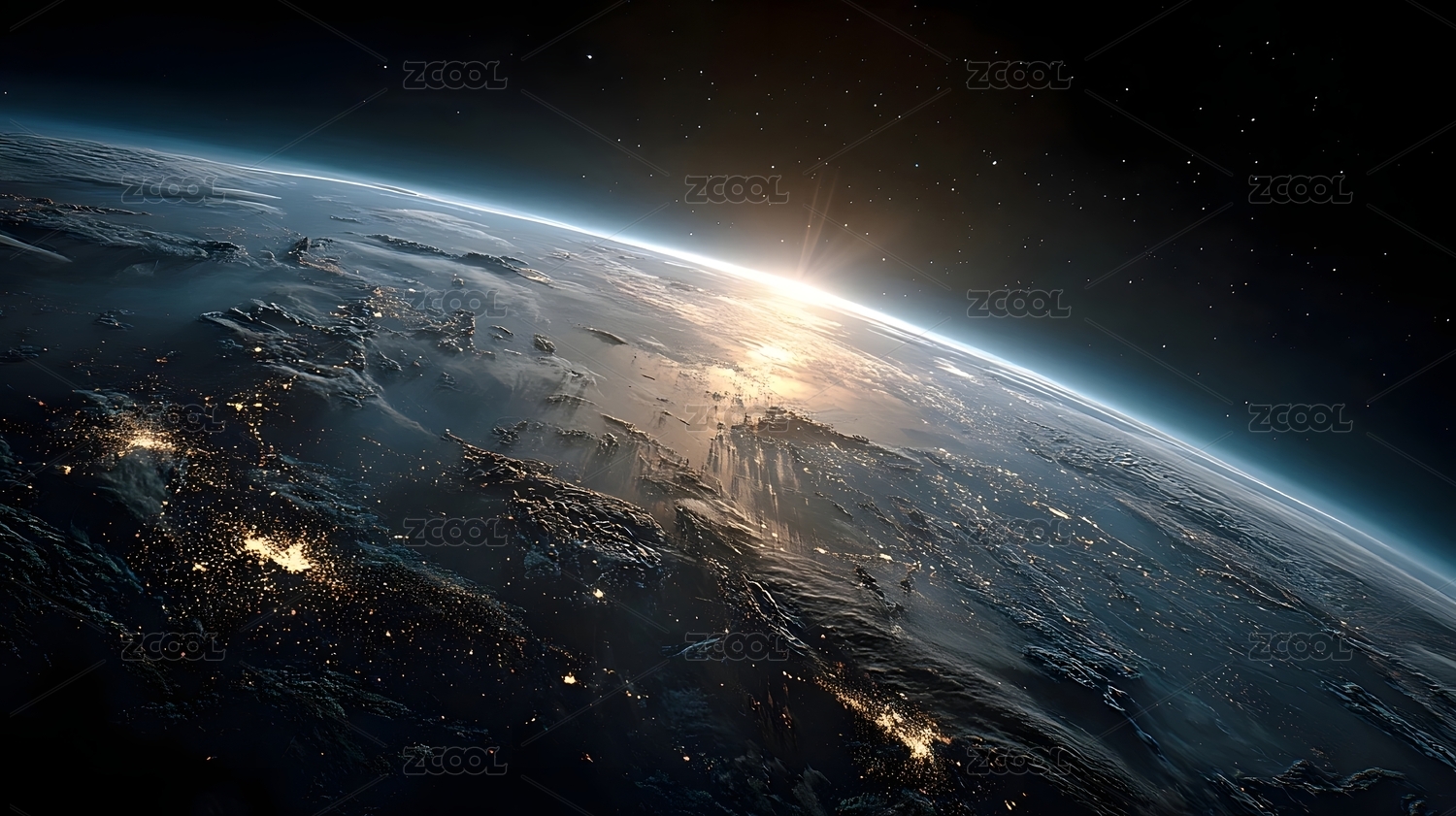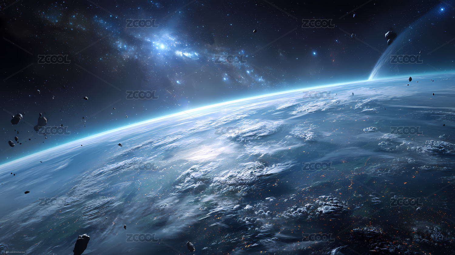 太空俯视地球美丽景象宇宙蓝色科技感背景
