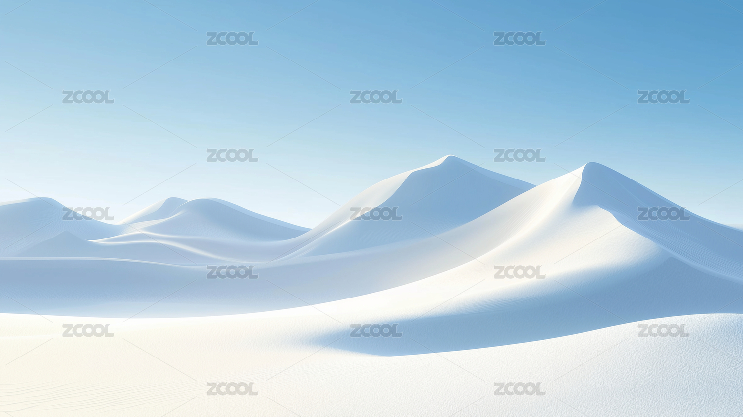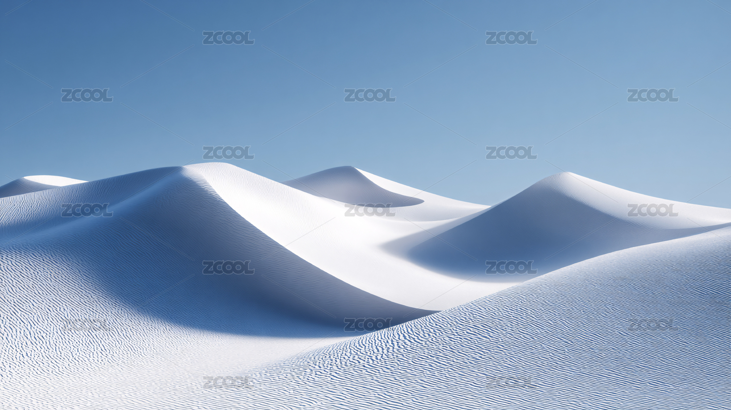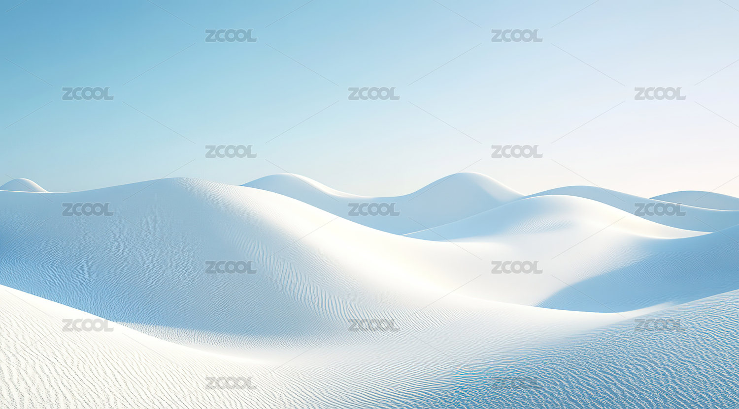 超现实主义起伏不断的白色沙丘和湛蓝天空