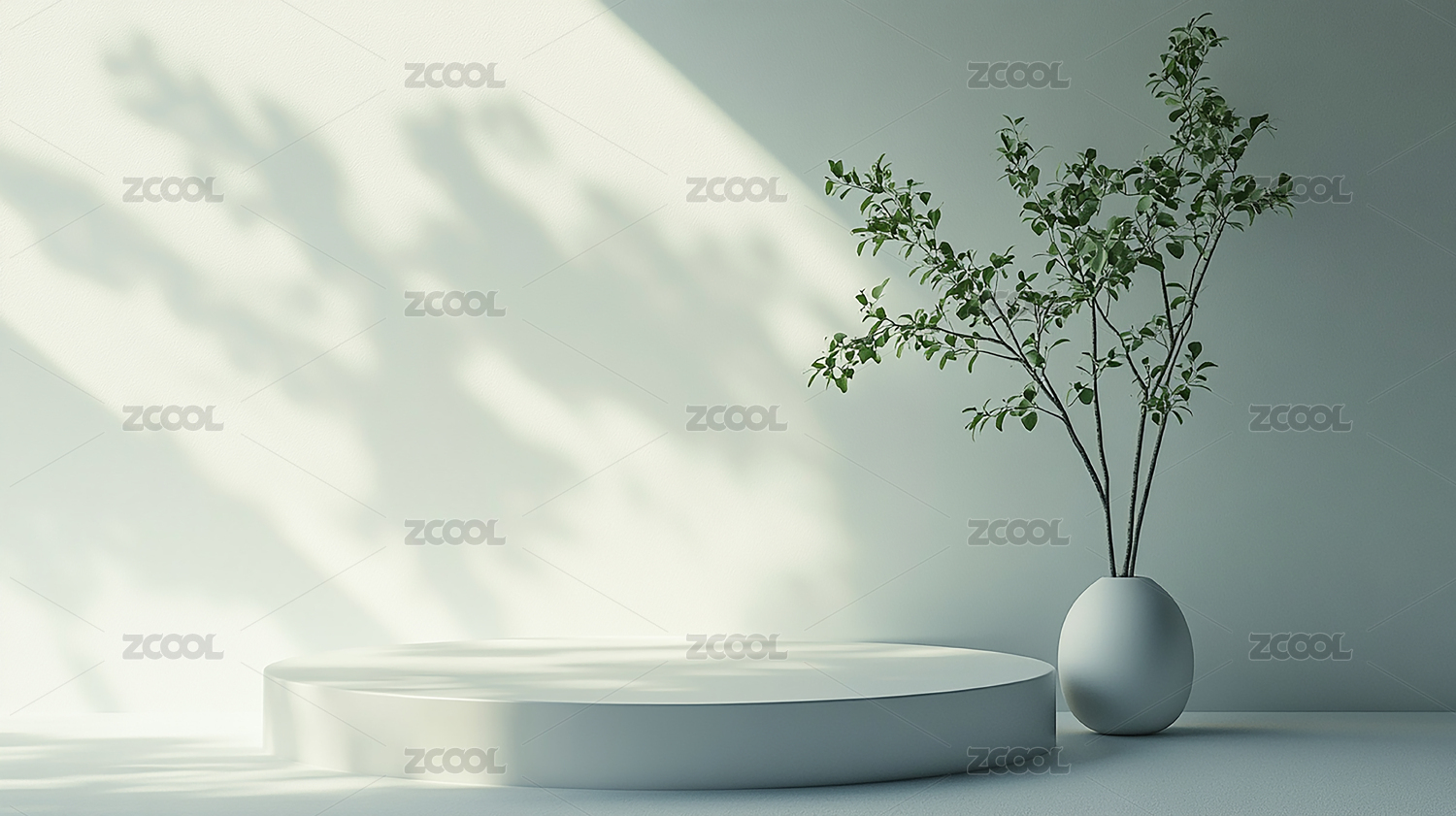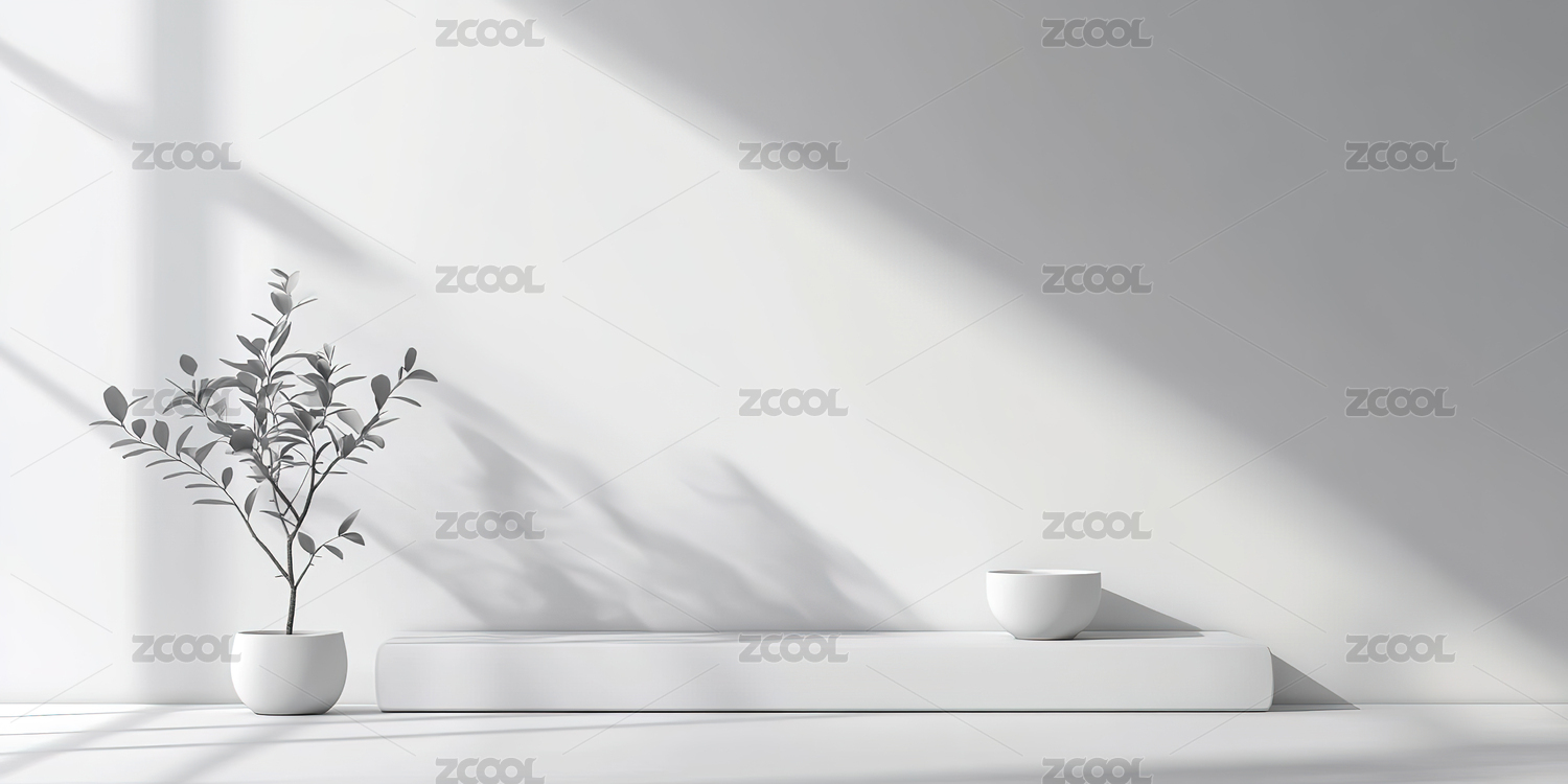 数码白色植物桌子光影场景摆台海报背景