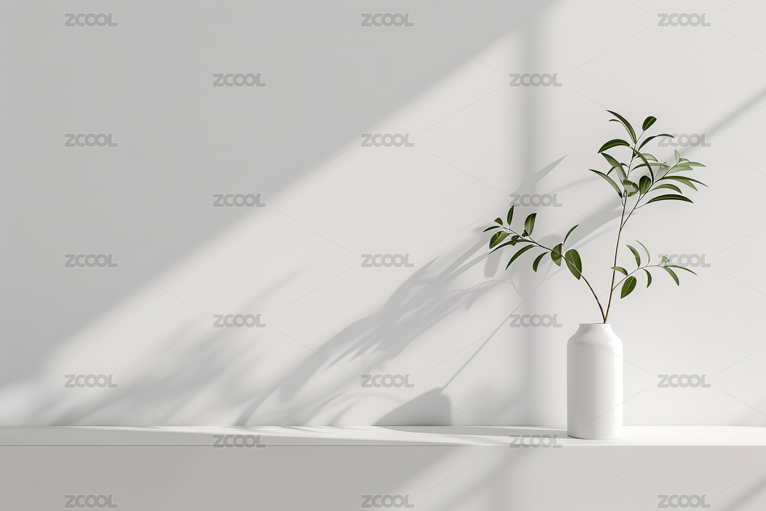 白色花瓶绿色橄榄枝
