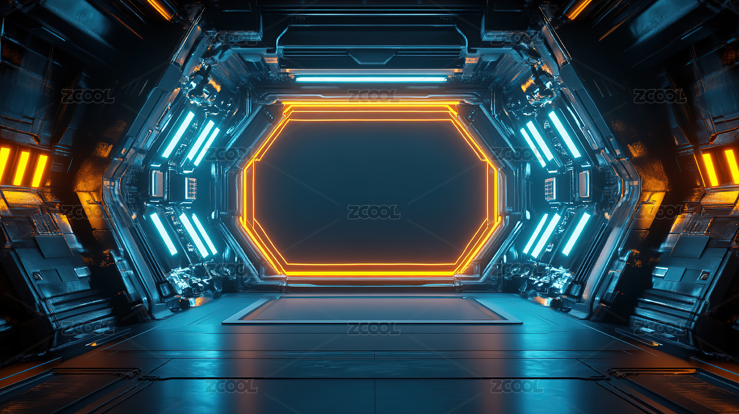 3D霓虹光圈未来科技空间感商务背景3D霓