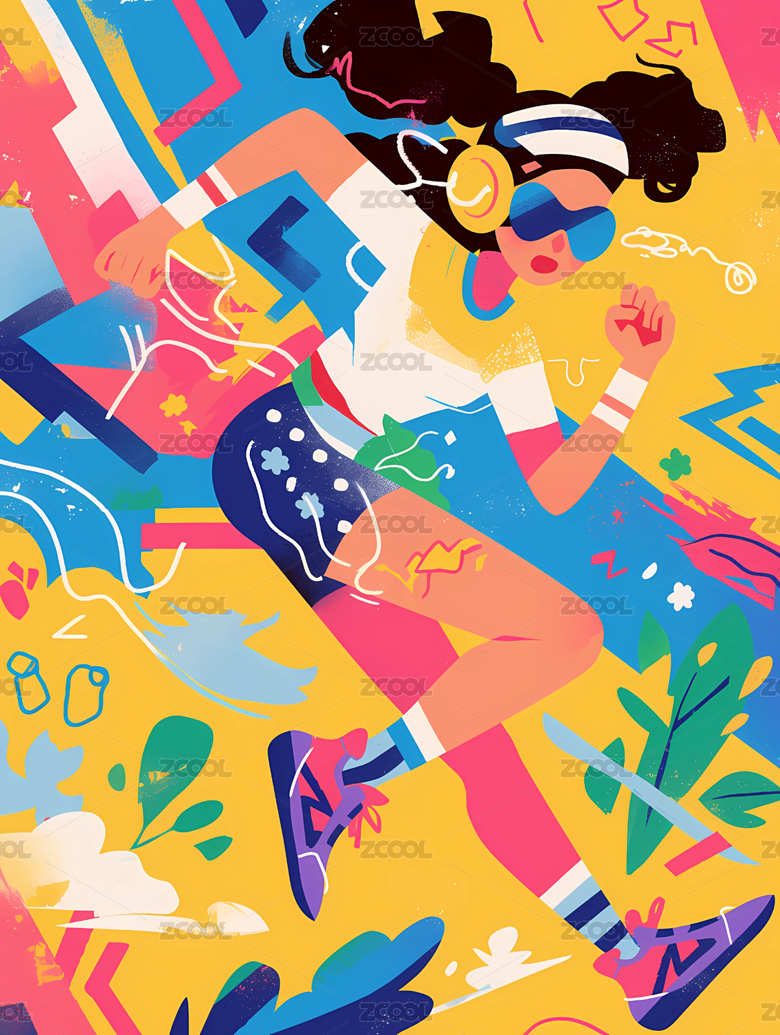 波普风格的女生运动插画扁平几何