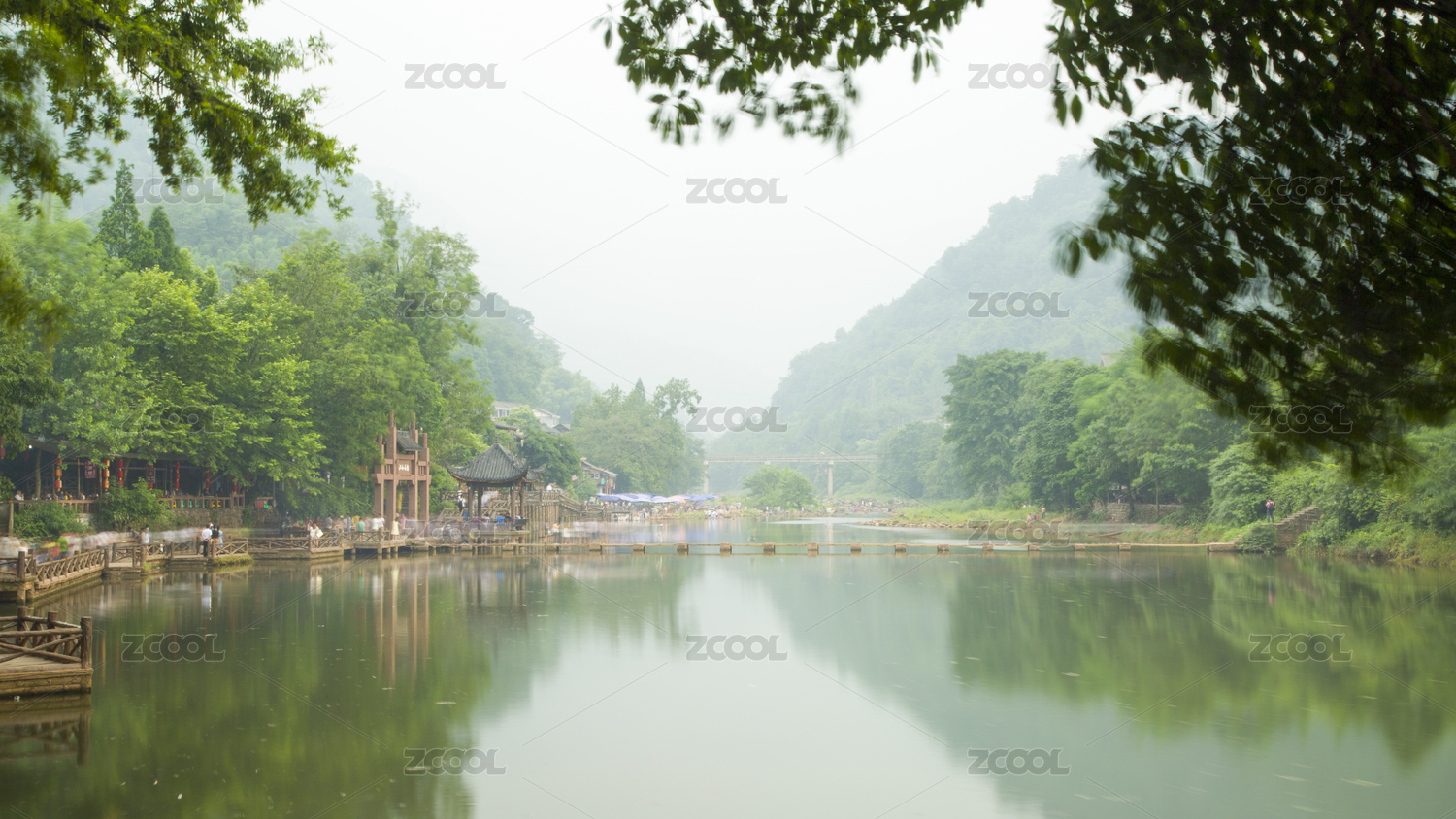 中国浙江杭州西湖景点浴鹄湾雨天风光