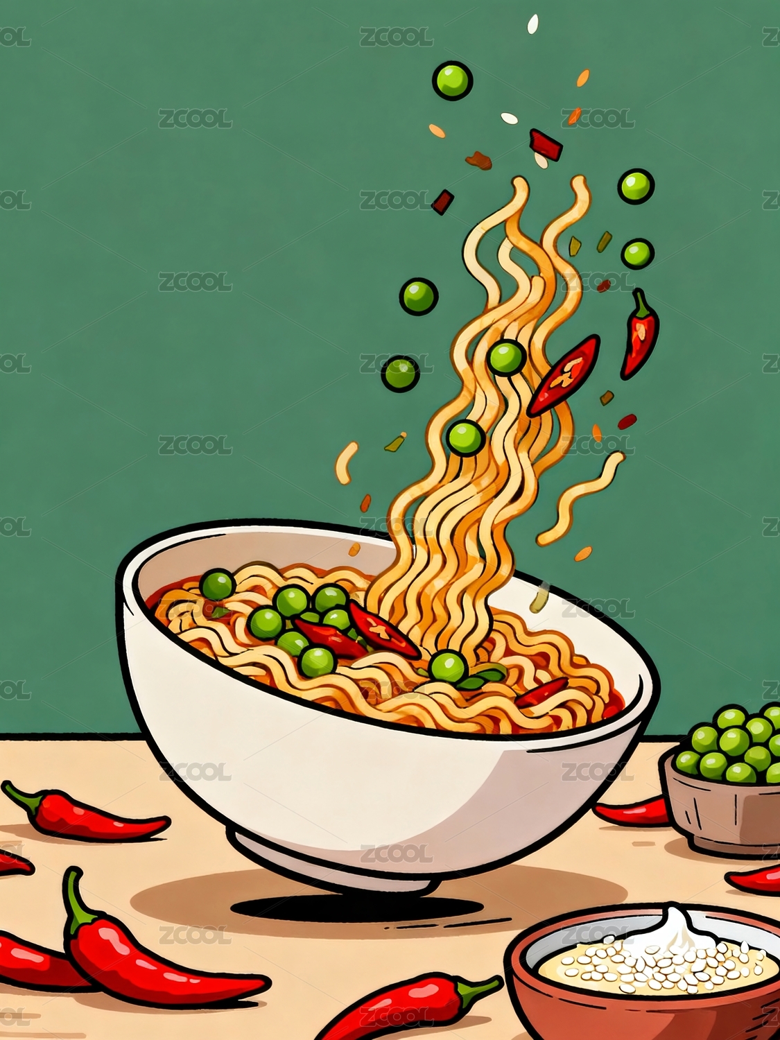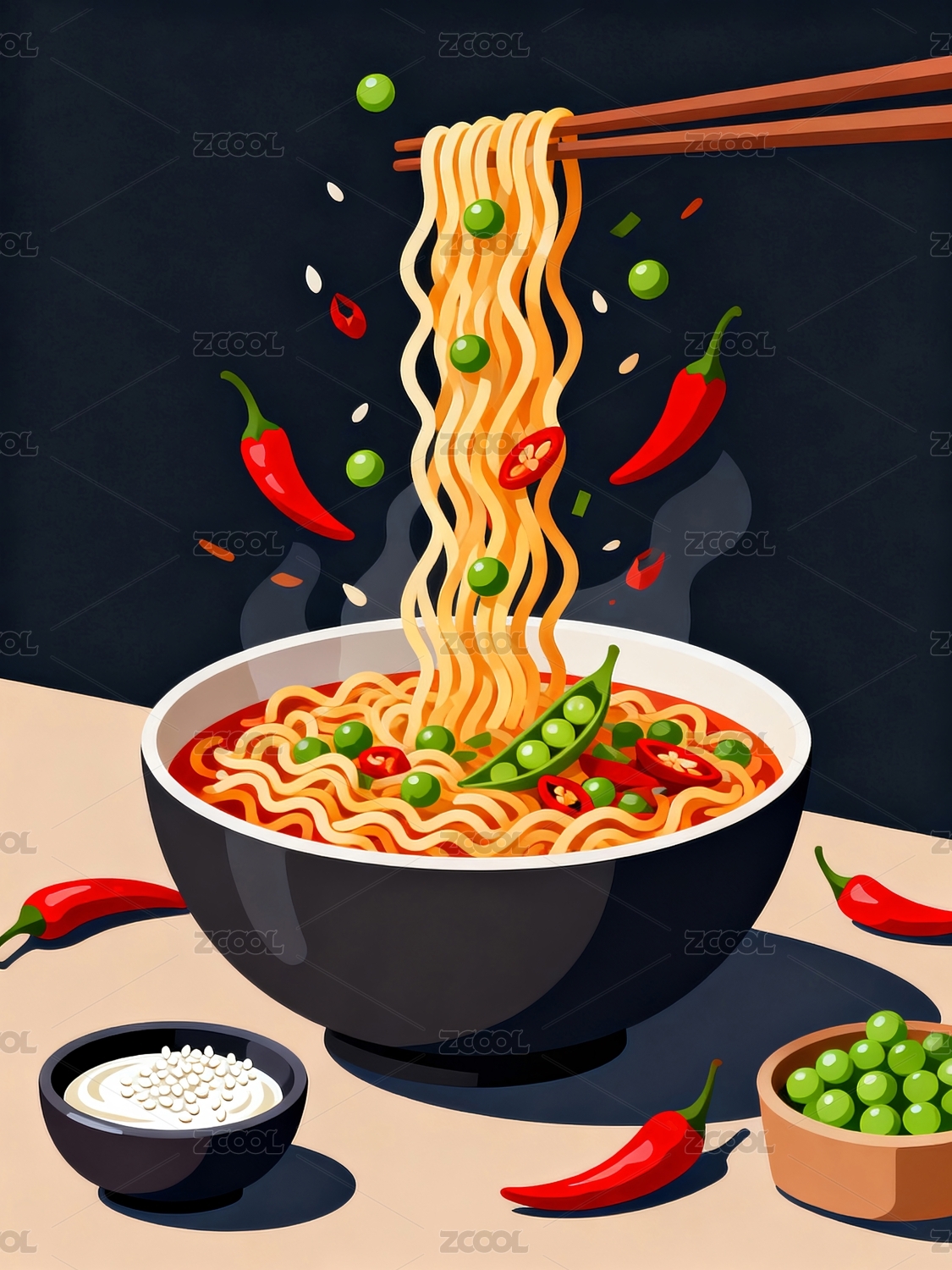 螺蛳粉,南昌拌粉,生煎包,兰州拉面,桂林米粉,米粉插画,手绘美食,DXCZ202404