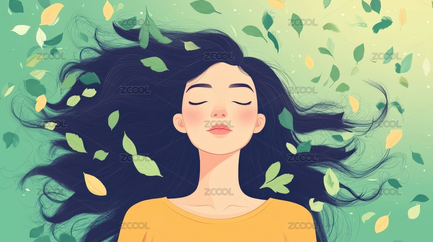 扁平,插图,插画,女孩,时尚,美丽,图案,艺术,设计,年轻