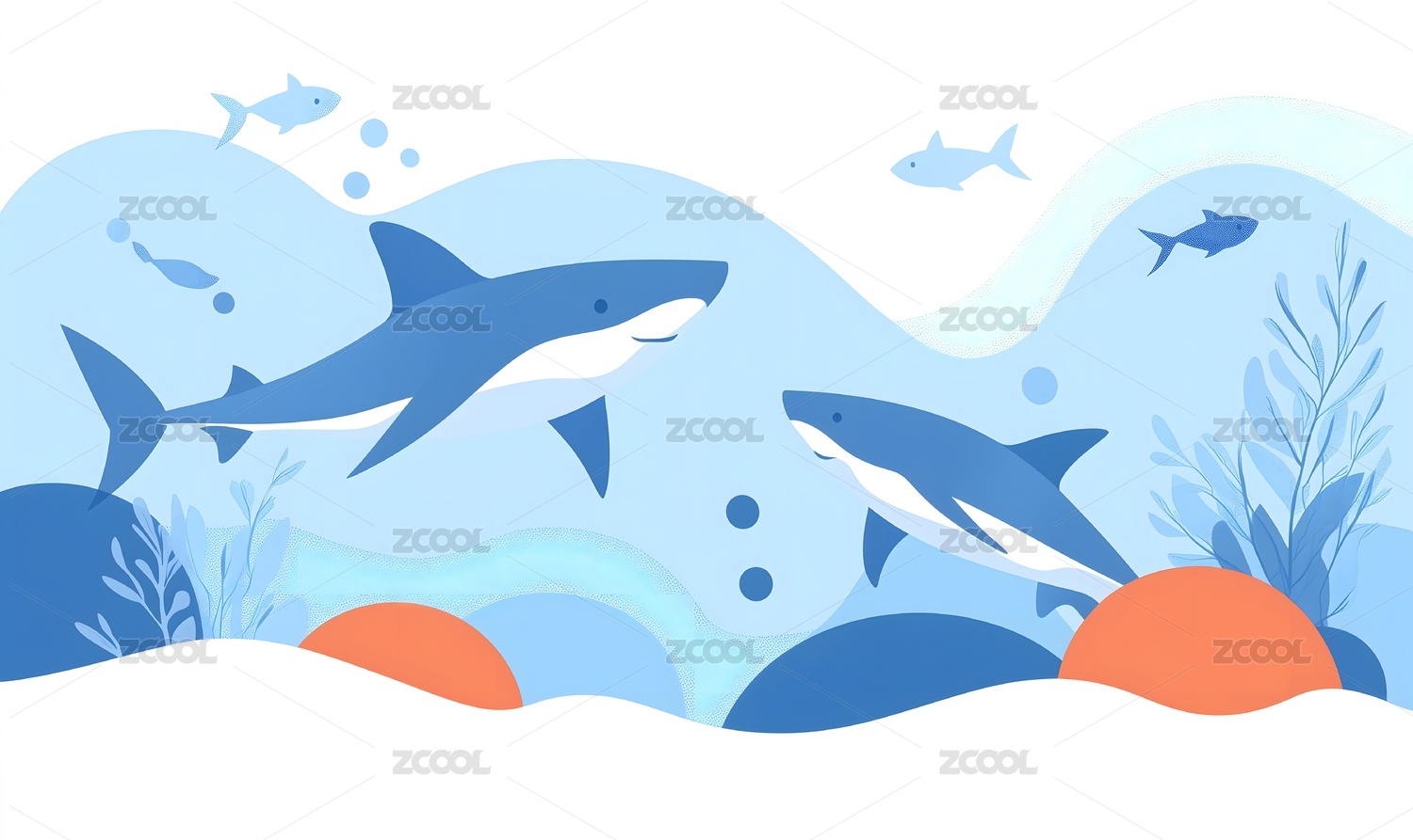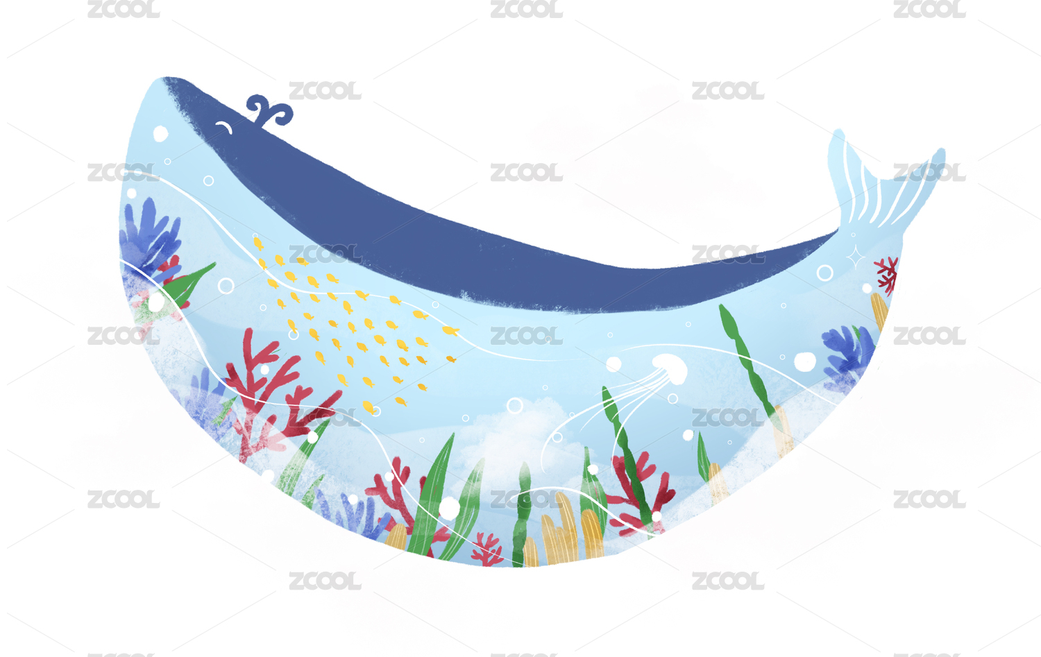 鲸鱼的身体里有珊瑚海底世界 幻想风格手绘