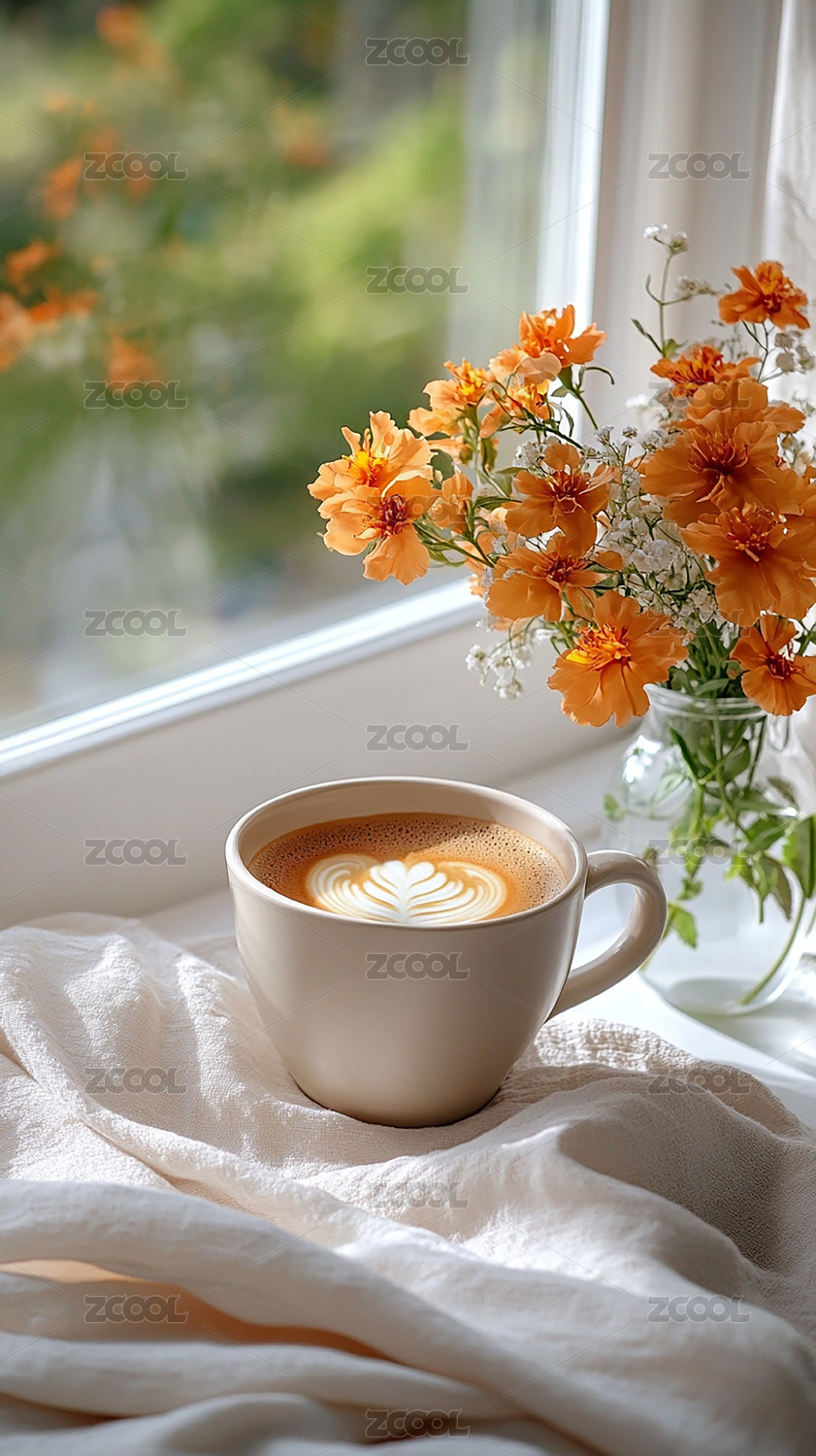 春季,意境,优美,舒适,室内,花束,咖啡,唯美,背景