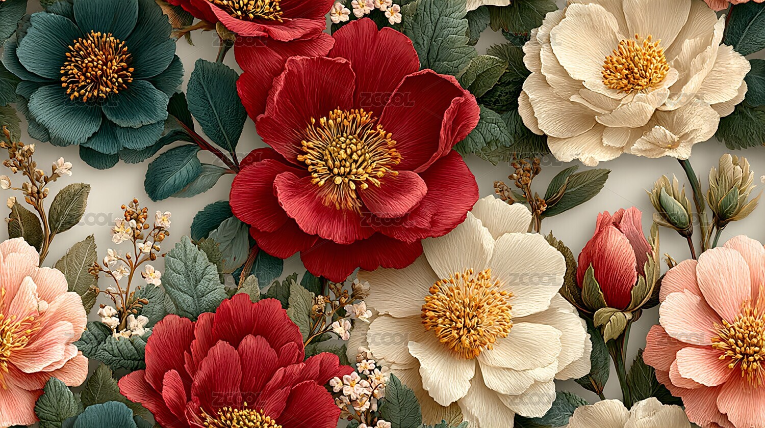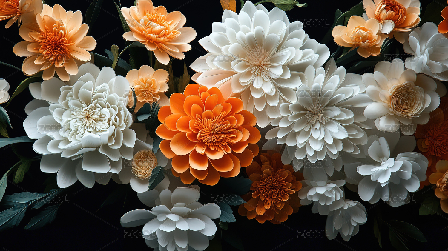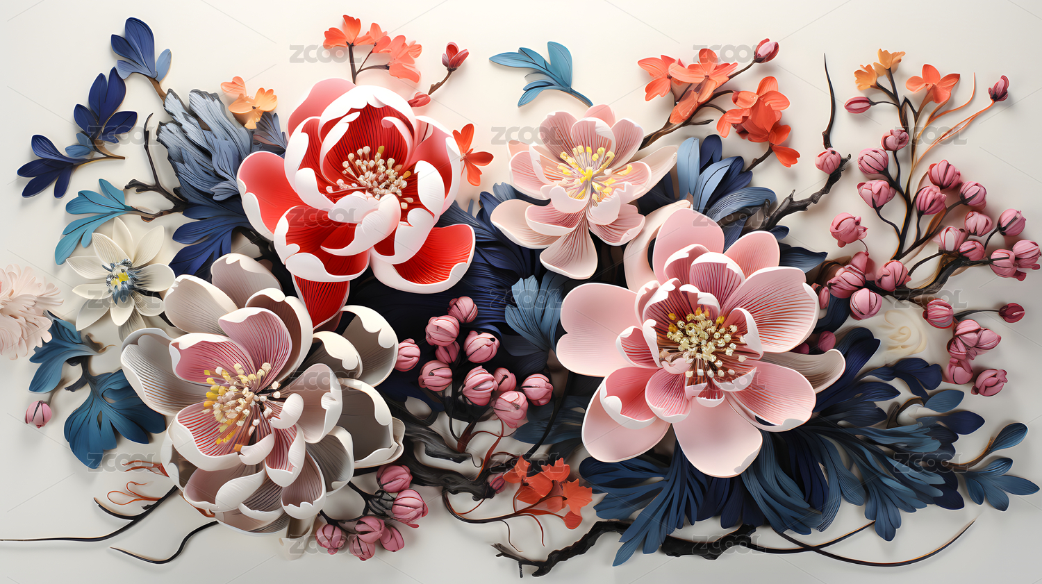 多彩立体花卉图案