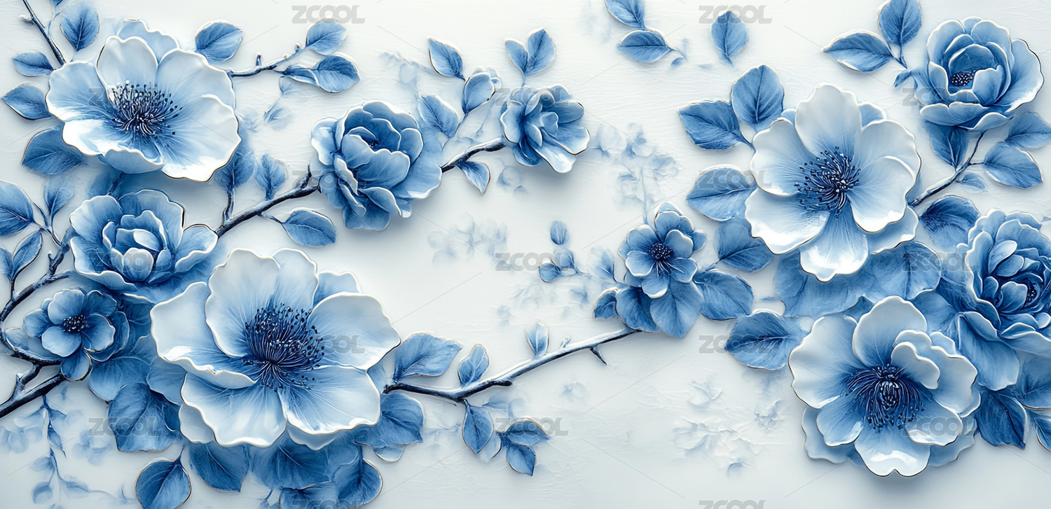 青花瓷风格的花卉