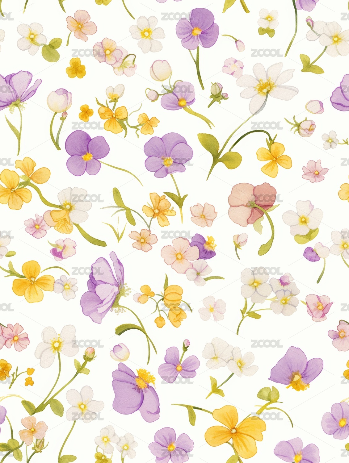 水彩,印花,清新,可爱,白色,花卉,图案,绘画,纹理,植物