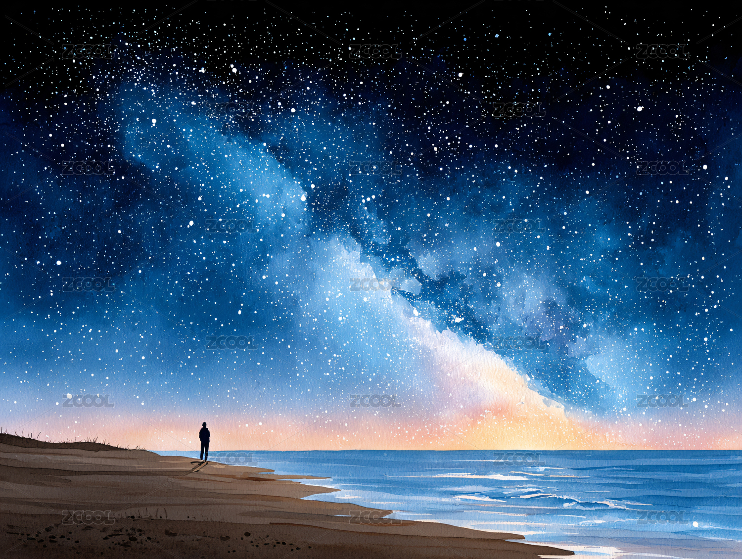 水彩,蓝色,天空,星星,太阳,螺旋,星系,宇宙,太空,星云