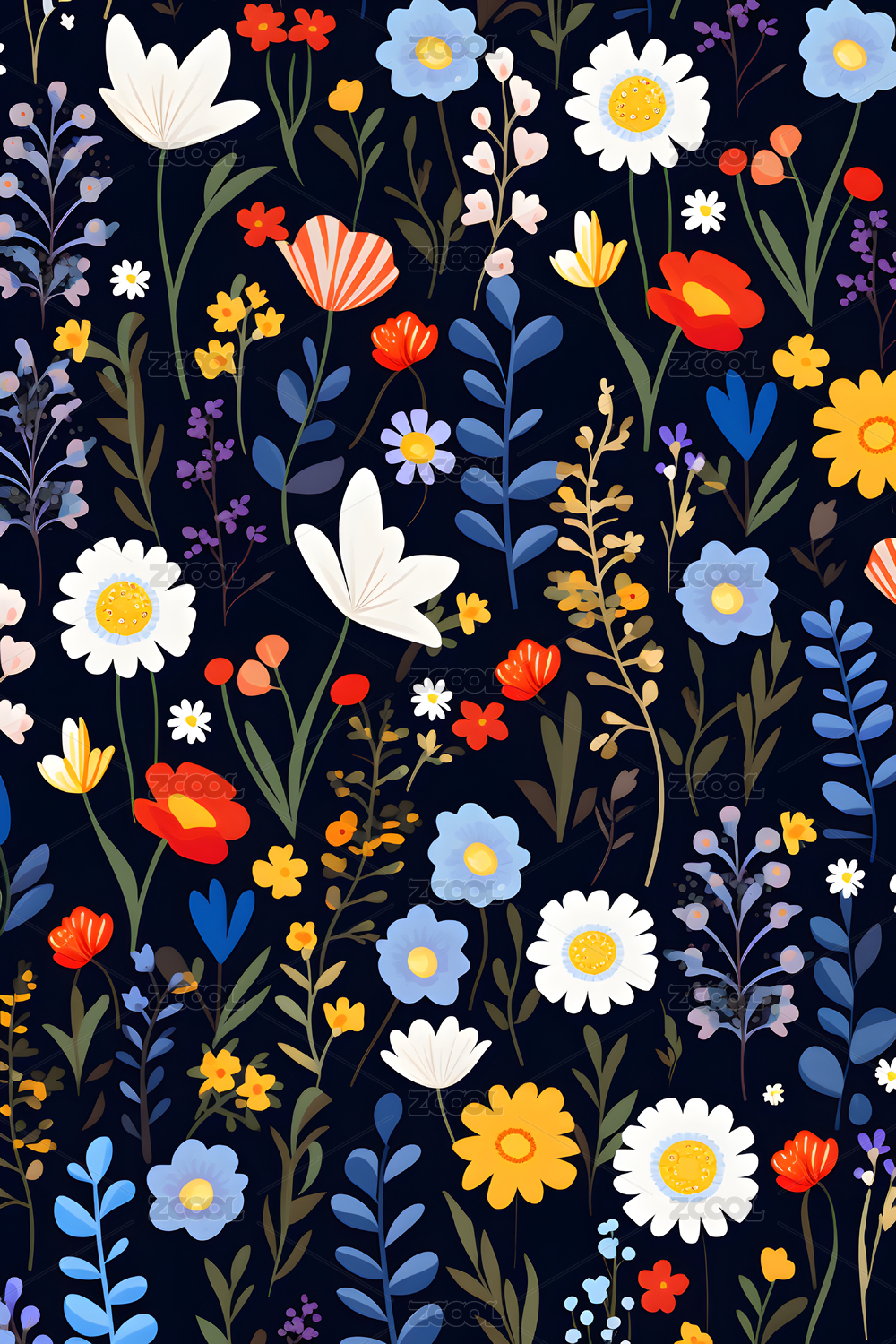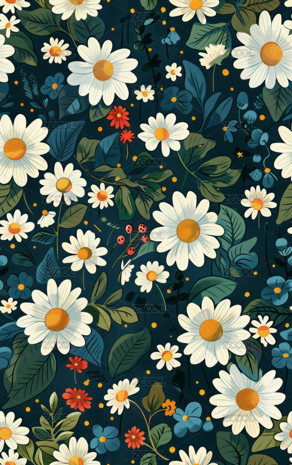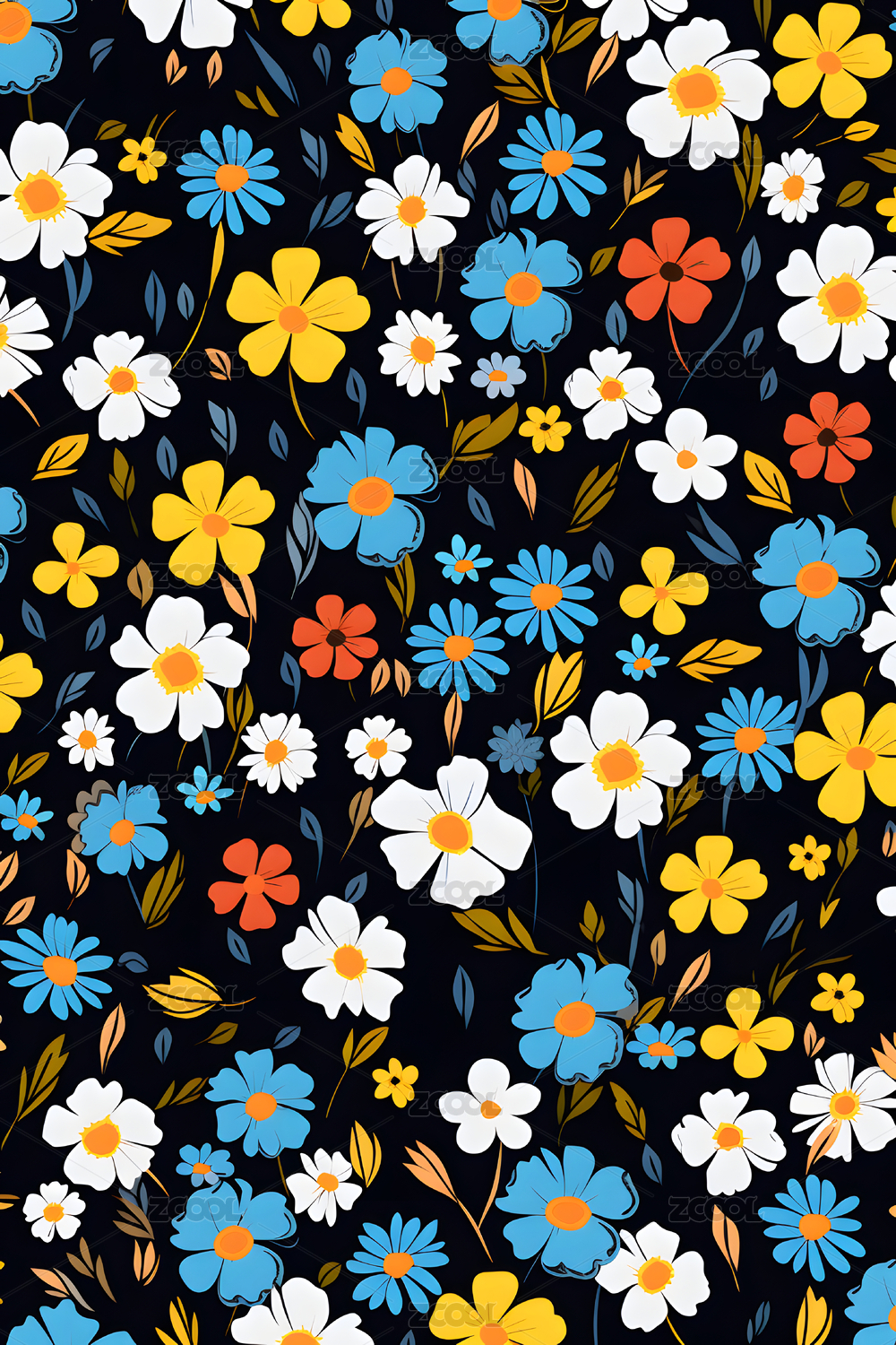 四方连续草本植物花卉印花图案