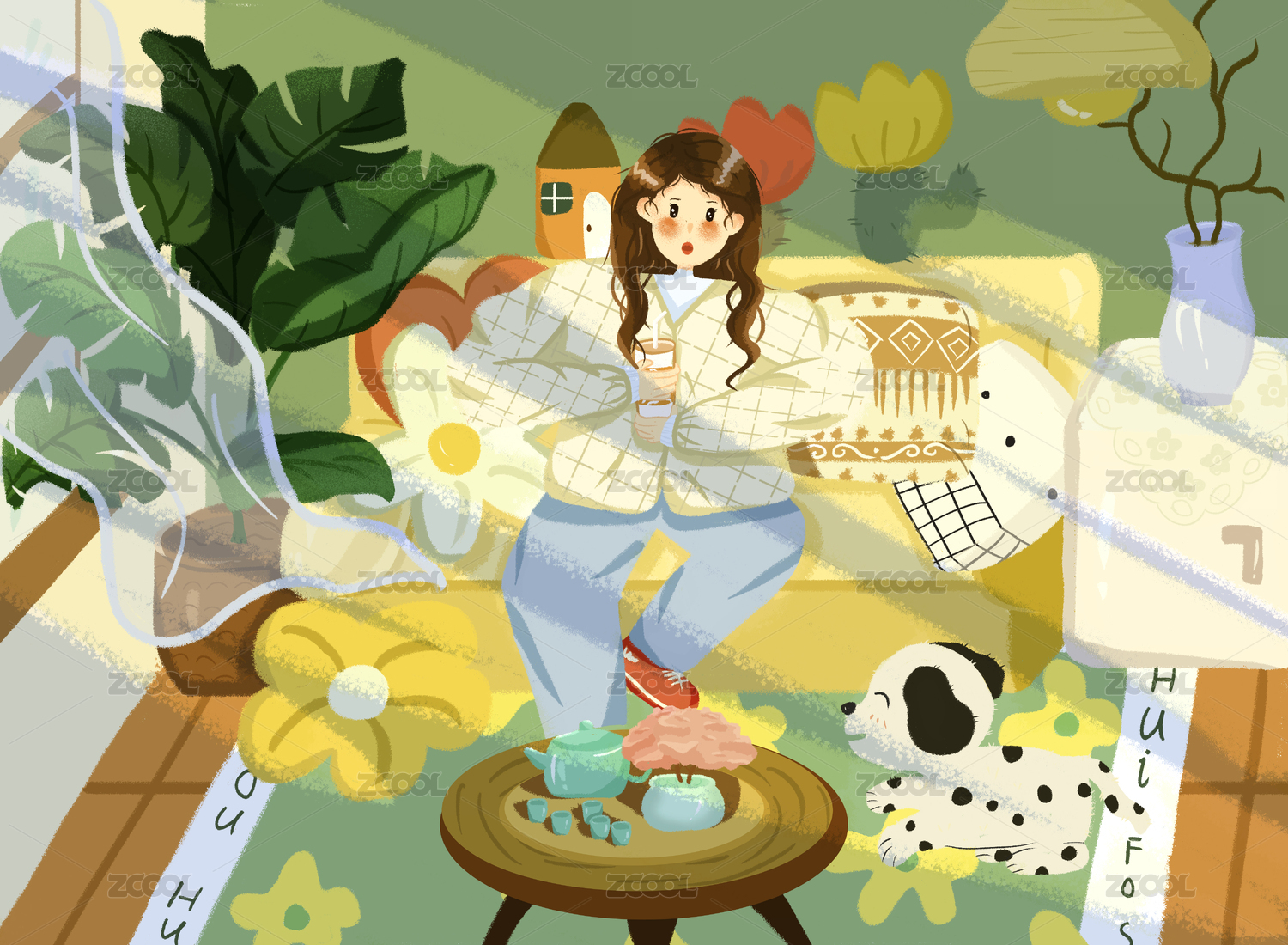 温暖午后,扁平插画