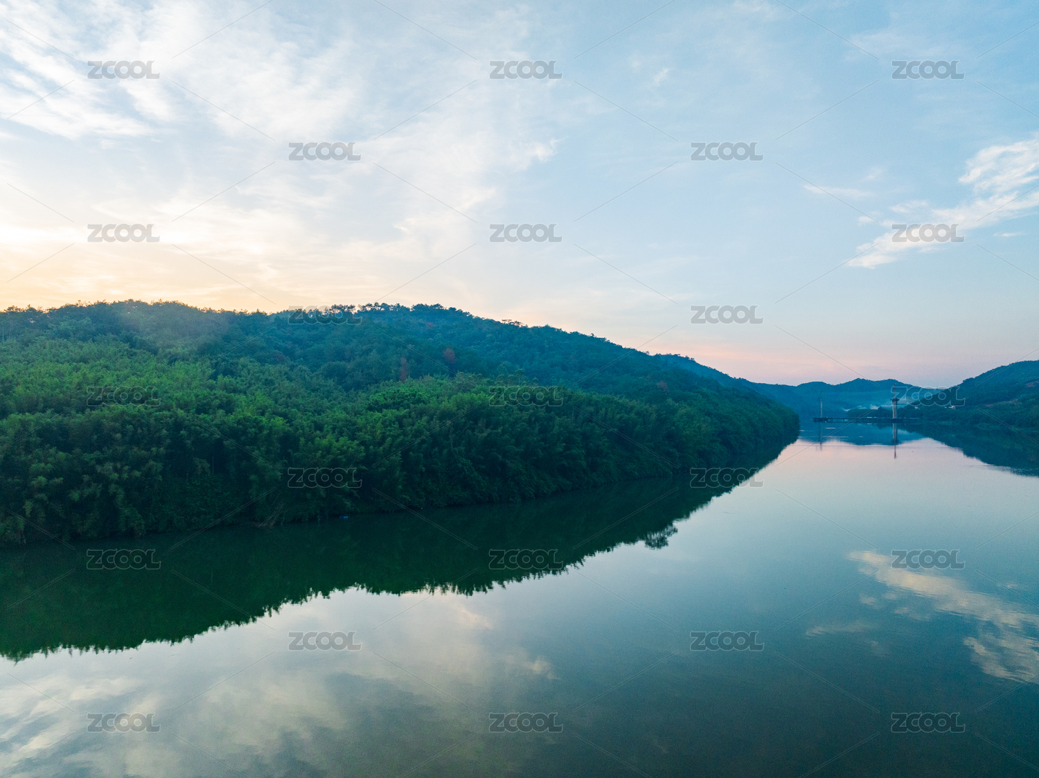 航拍湖南长沙泉水冲森林公园日出和乡村景观