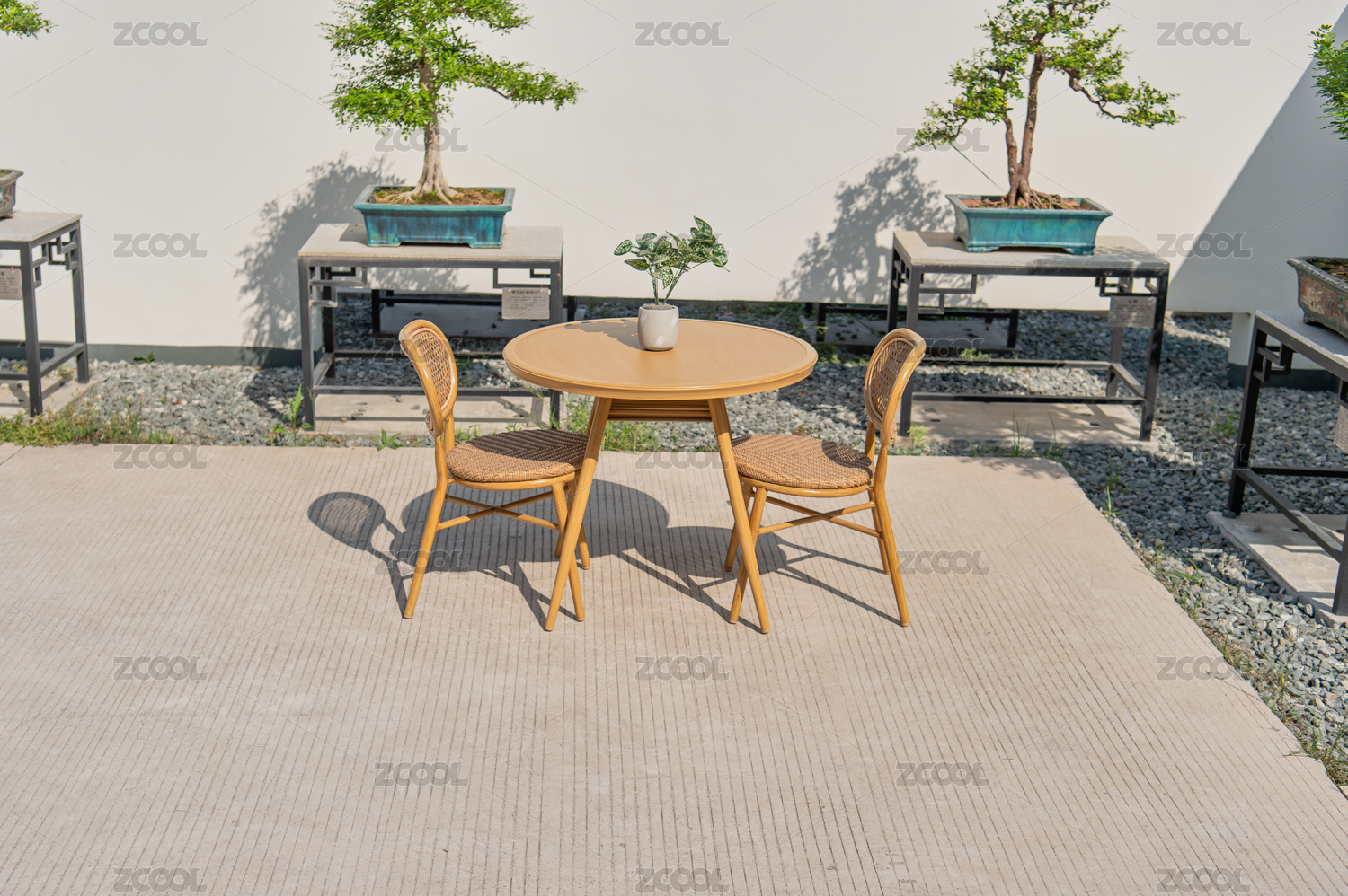 侧面角度展示的休闲桌椅