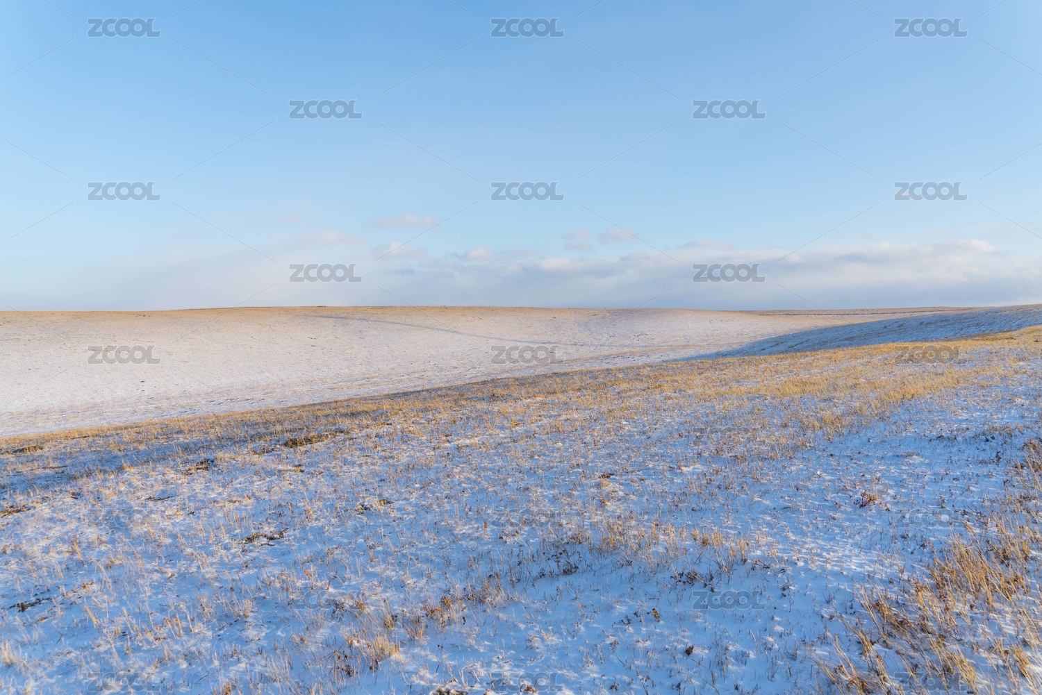 中国内蒙古呼伦贝尔下雪的草原