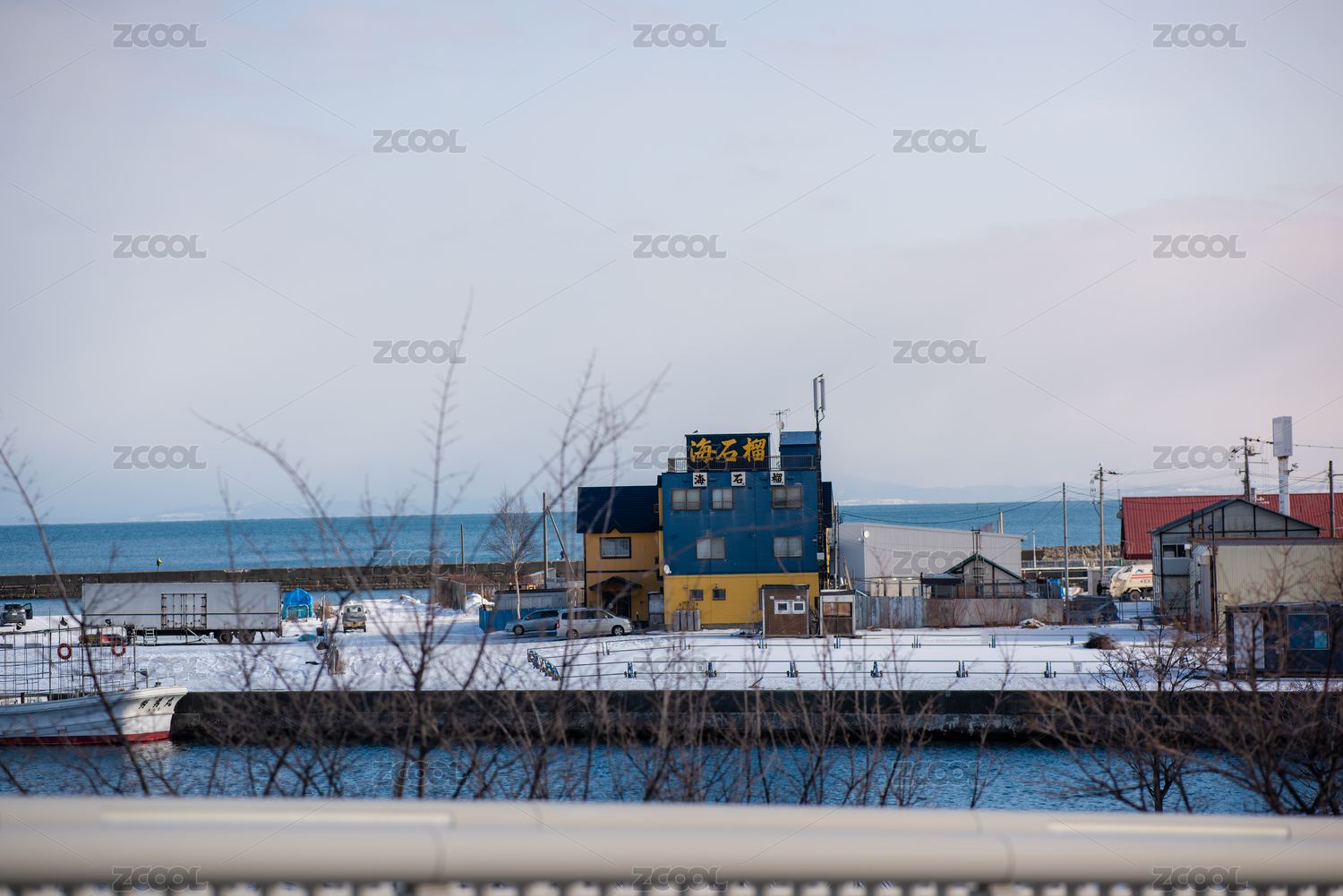 冬天里日本北海道小樽的海边建筑