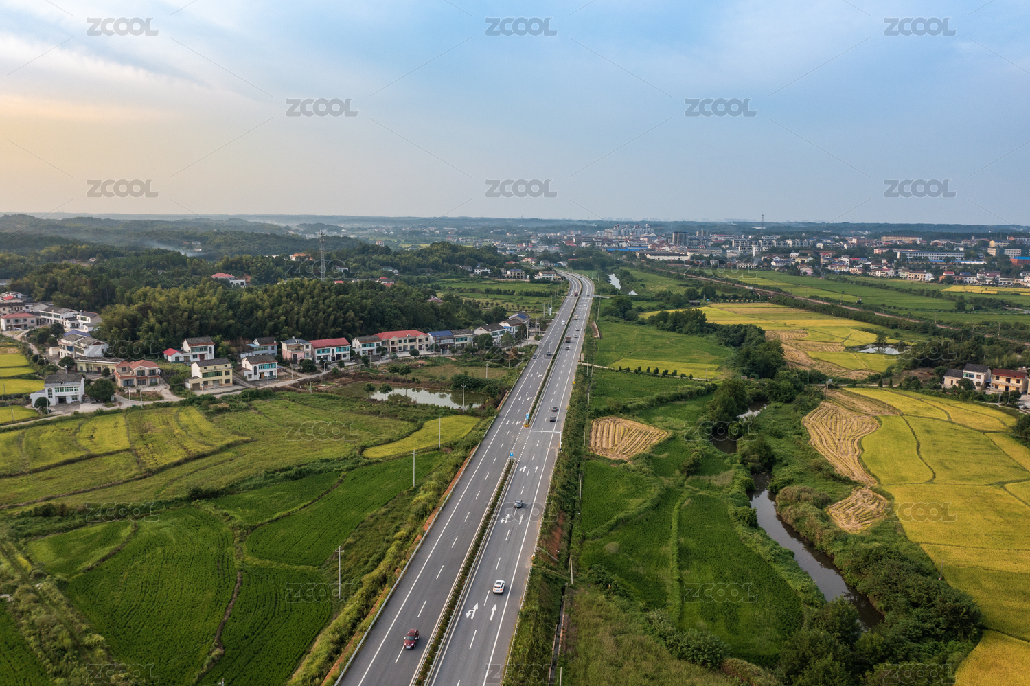 航拍穿过安徽郎溪凌笪乡金色田野的扬绩高速
