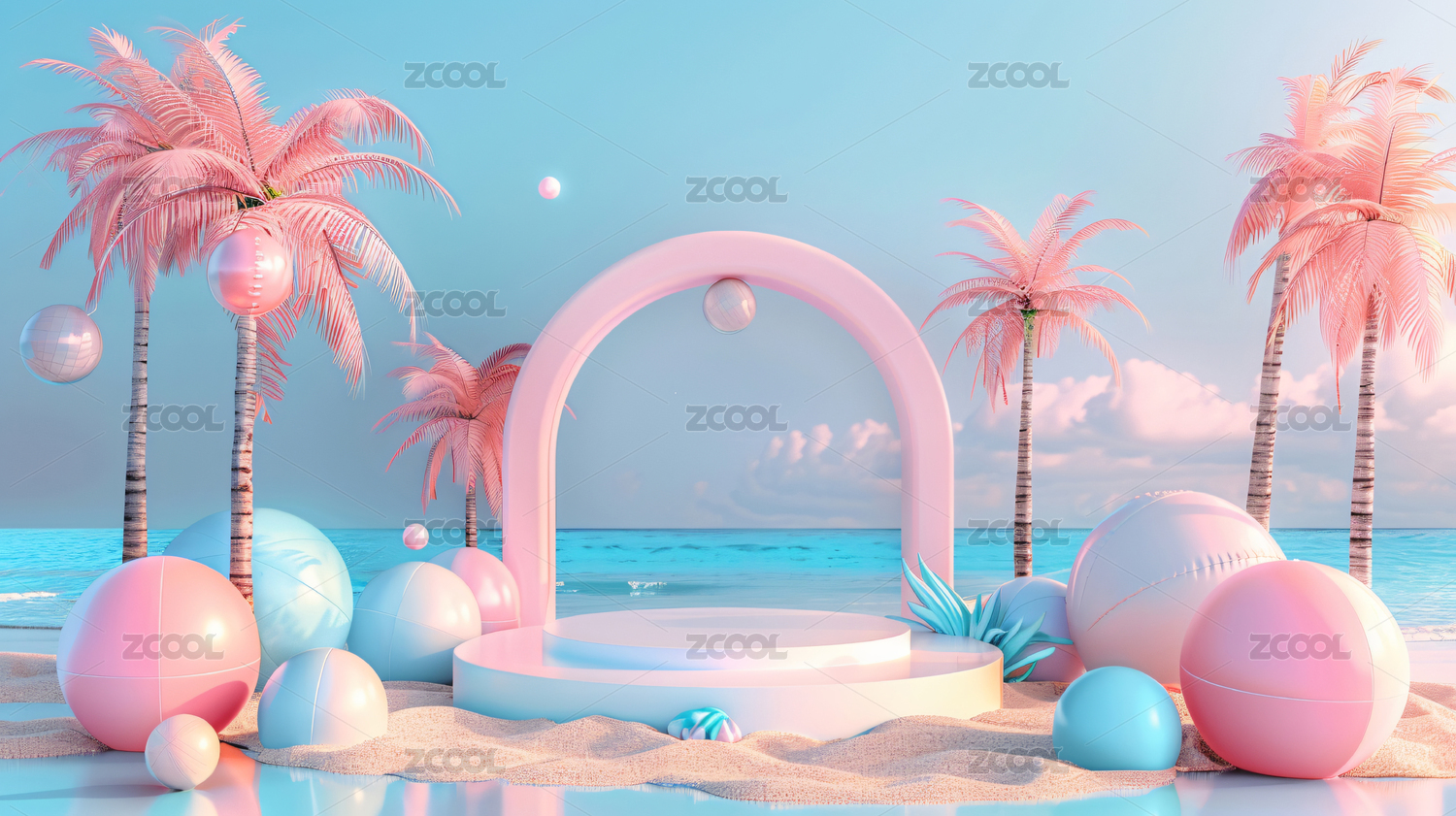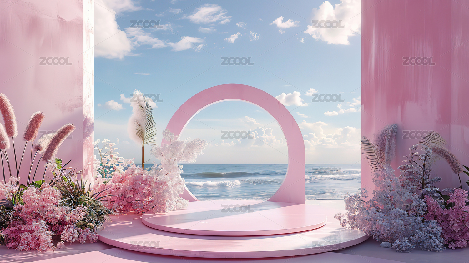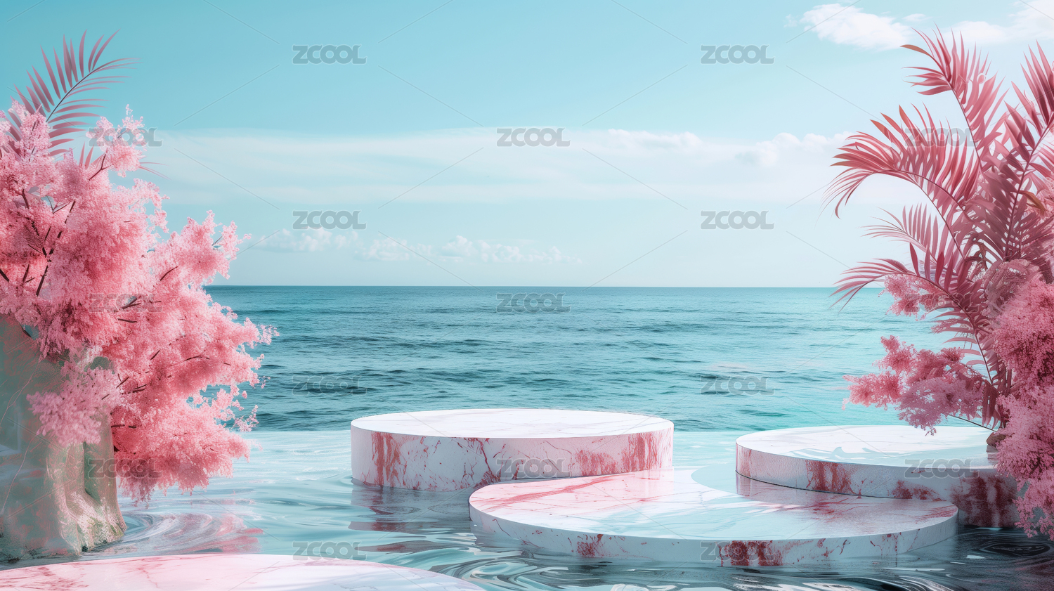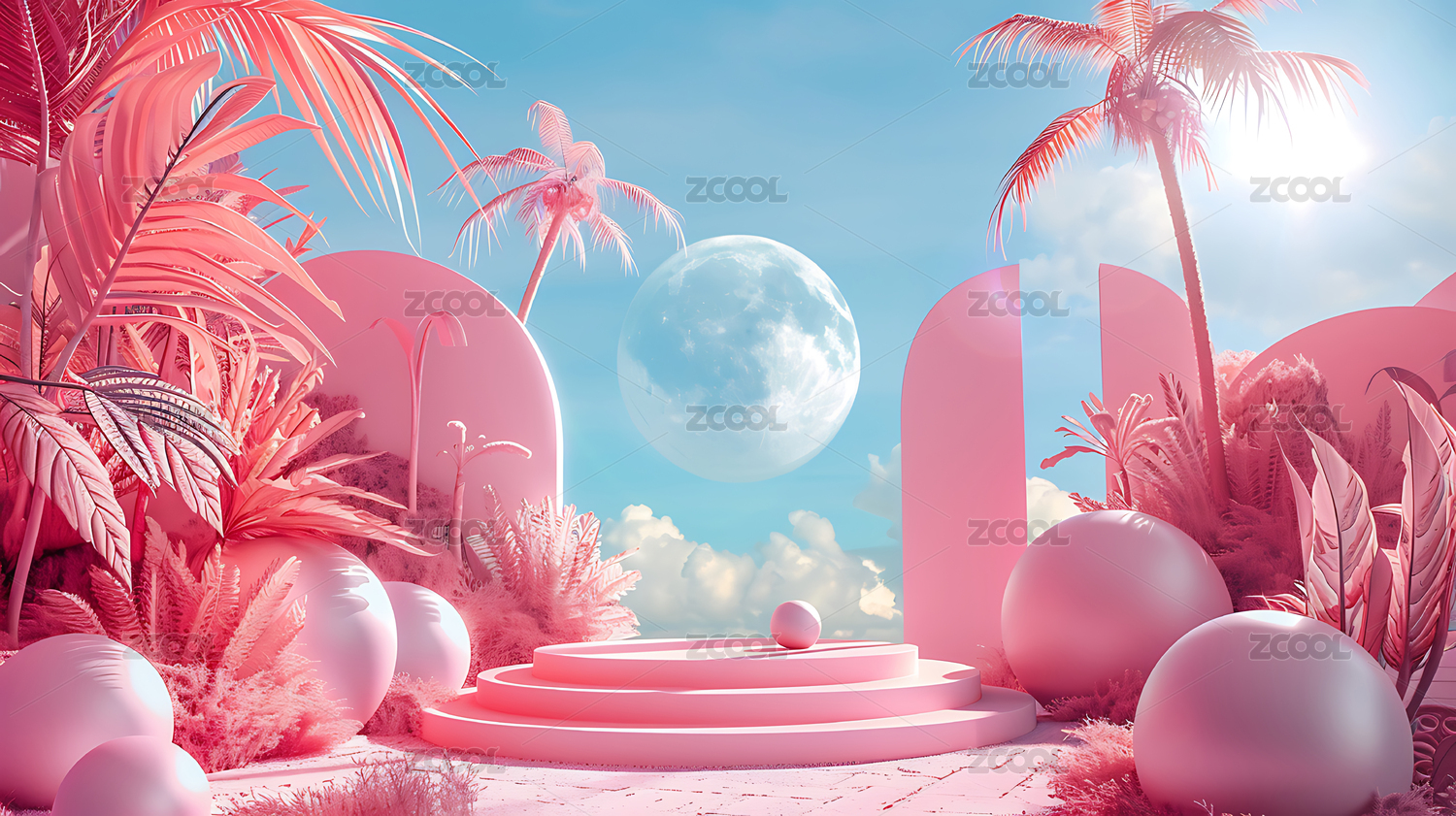 夏日,植物,梦幻,3d,展台,电商,清新,柔和