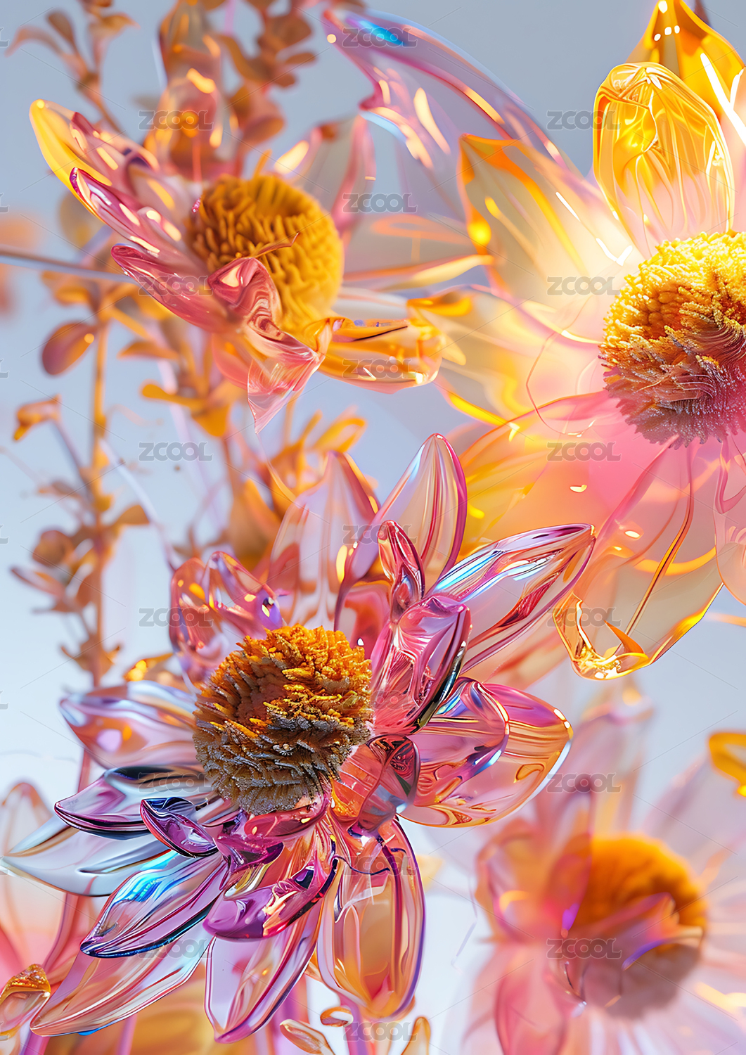 3d彩色透明玻璃花背景