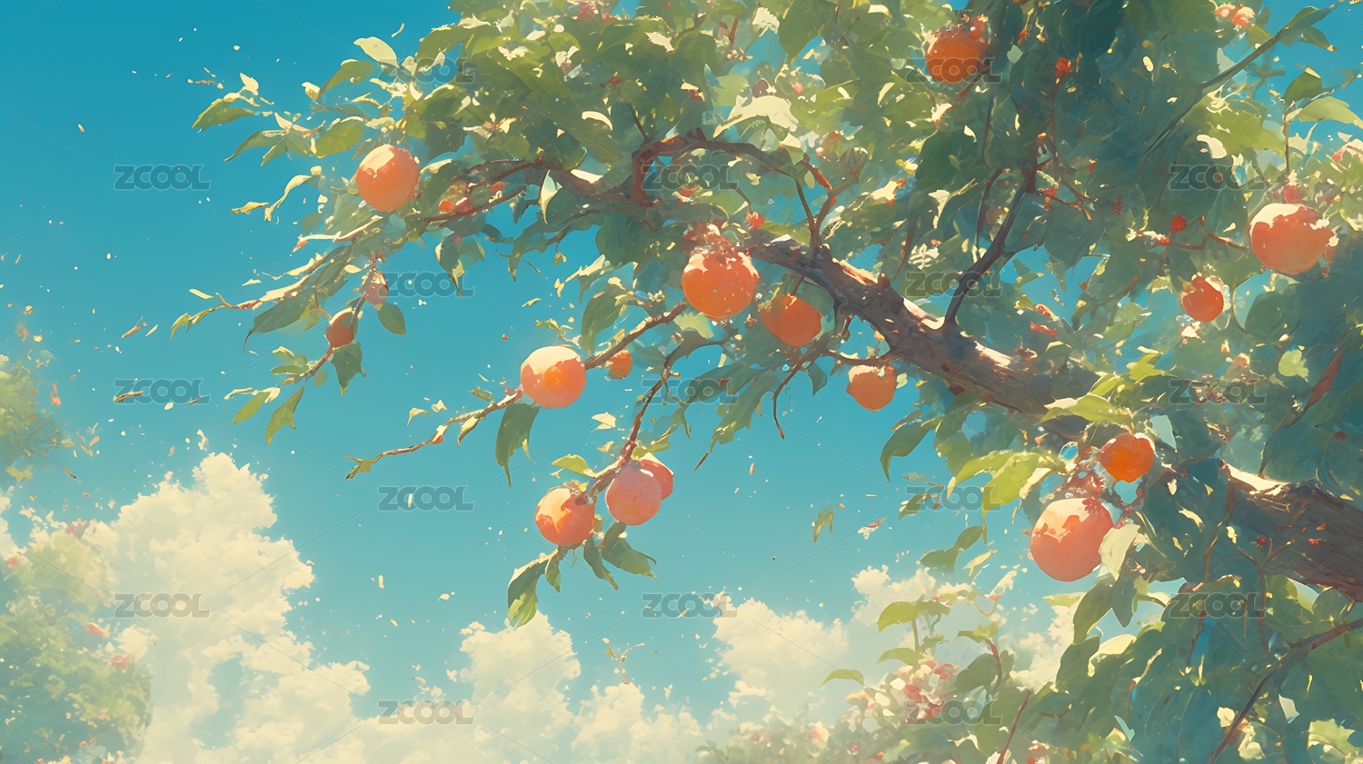 AIGCFG02,宫崎骏,吉卜力,风格,日漫,卡通,水果,树,植物,大树