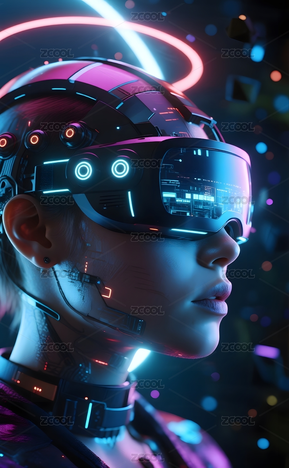 赛博朋克,人物,虚拟,虚构,未来,科技,科幻,发光,特效,AIGCFG