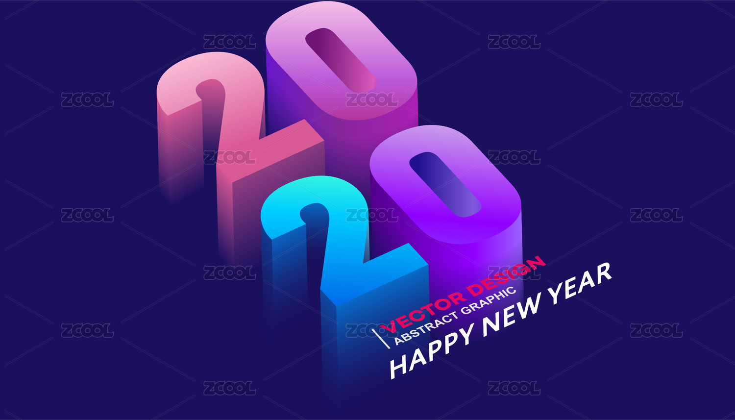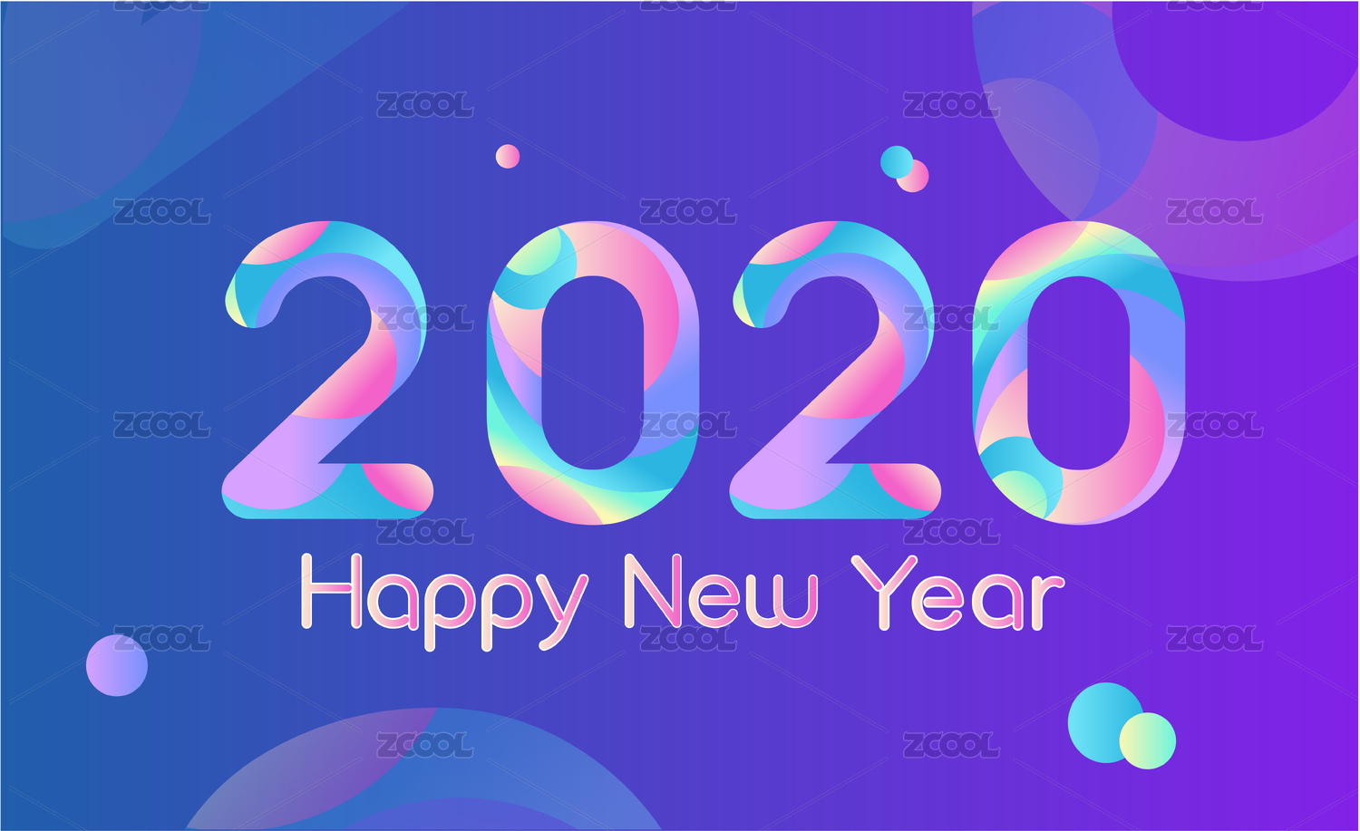 卡通手绘新年2020年字体艺术字节日新年闪屏海报插画