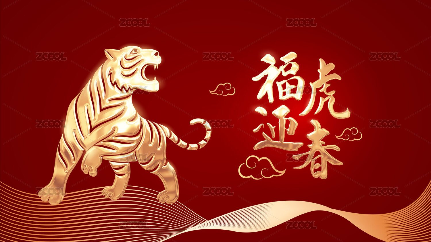 虎年春节毛笔字虎年贺岁矢量素材海报