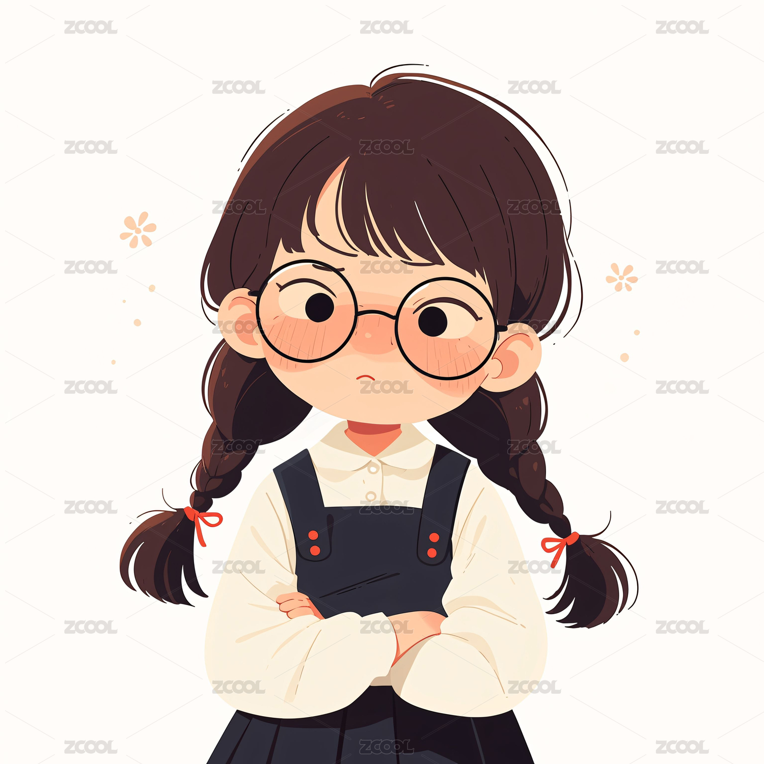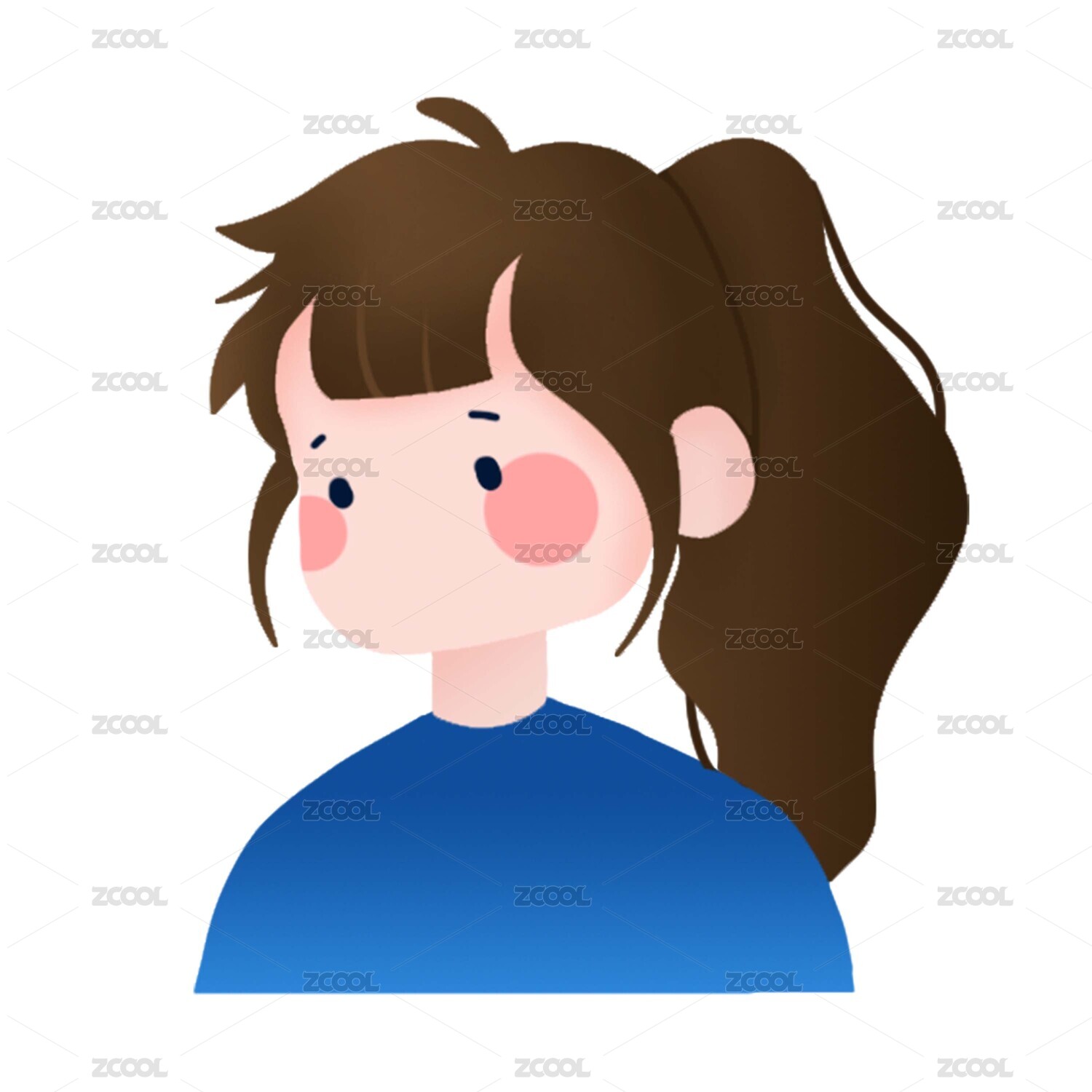 扁平风小清新女孩卡通表情可爱女生角色插画