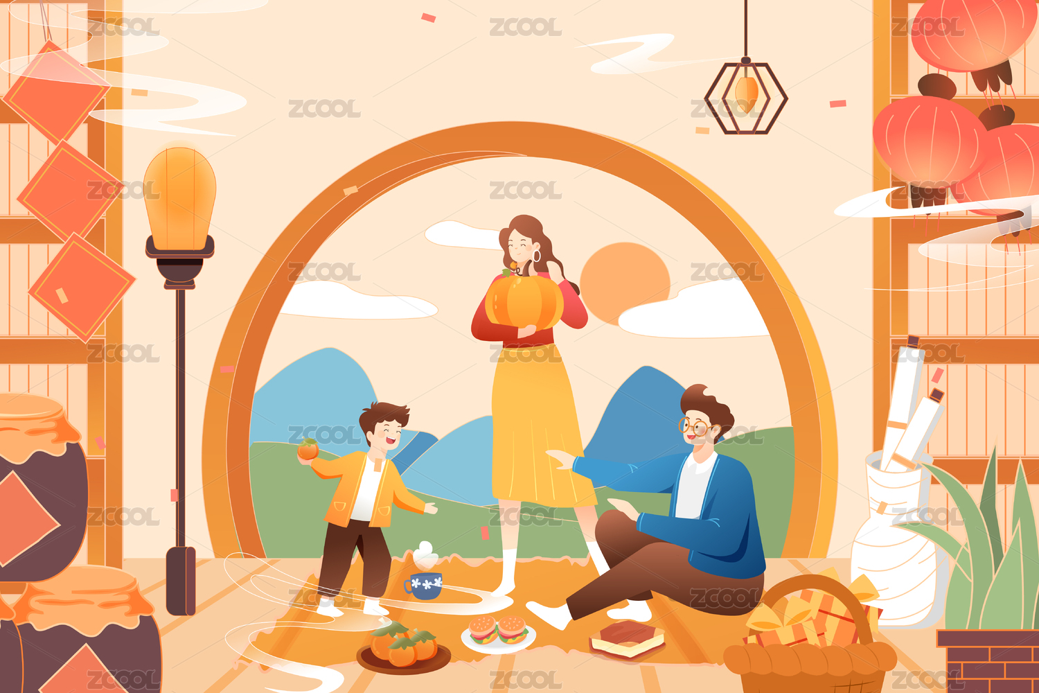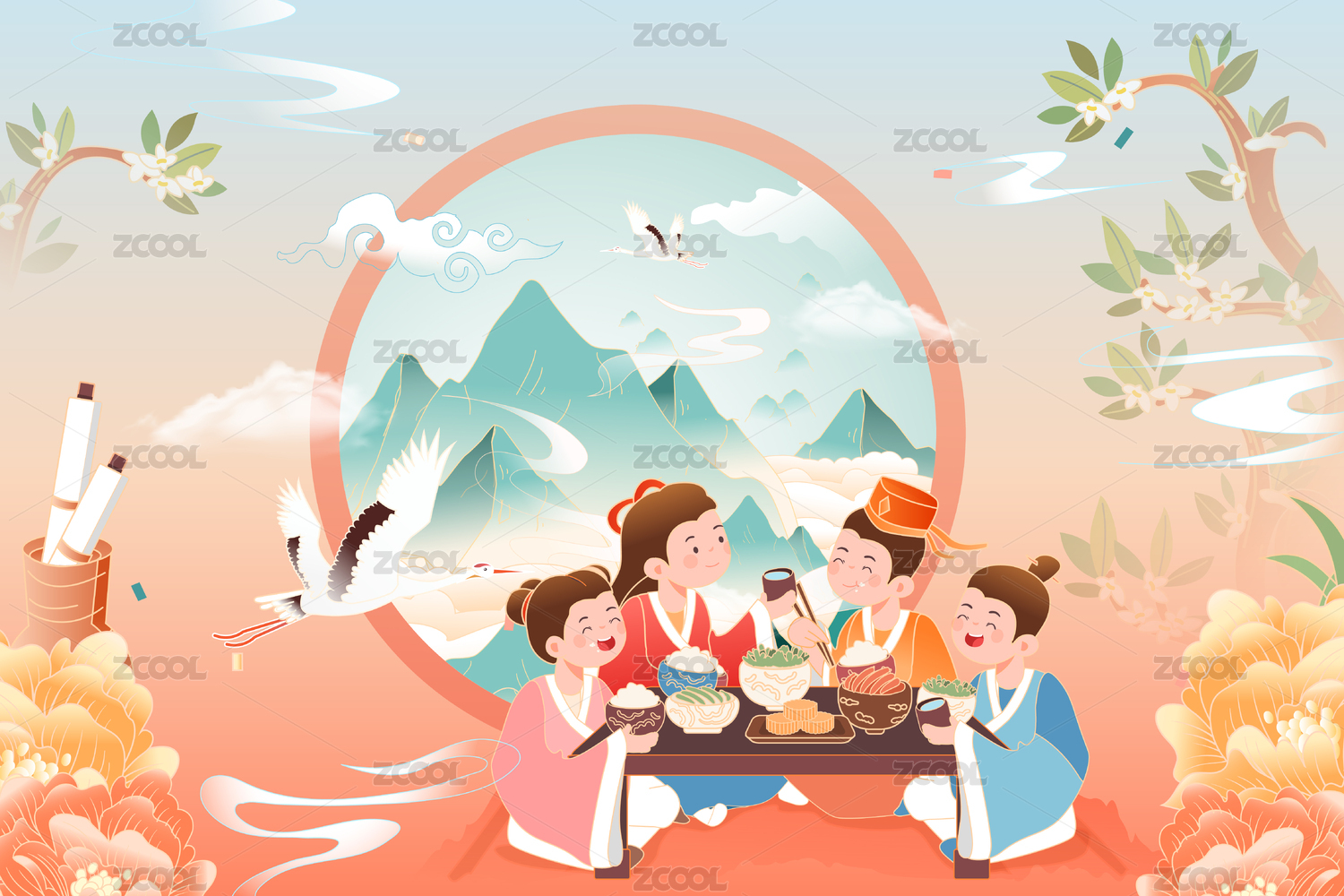 矢量,卡通,渐变,扁平,插画,插图,背景,元素,节日,传统