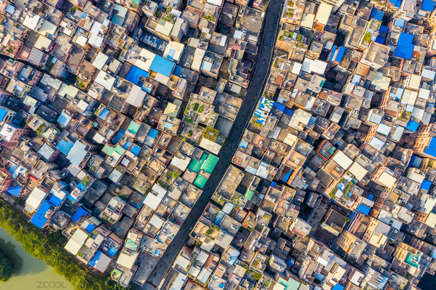 航拍中国广东省广州市黄埔区庙头村村落民居