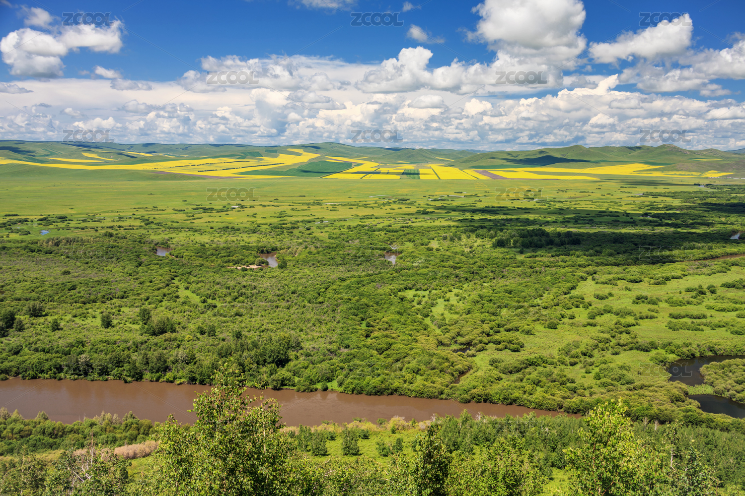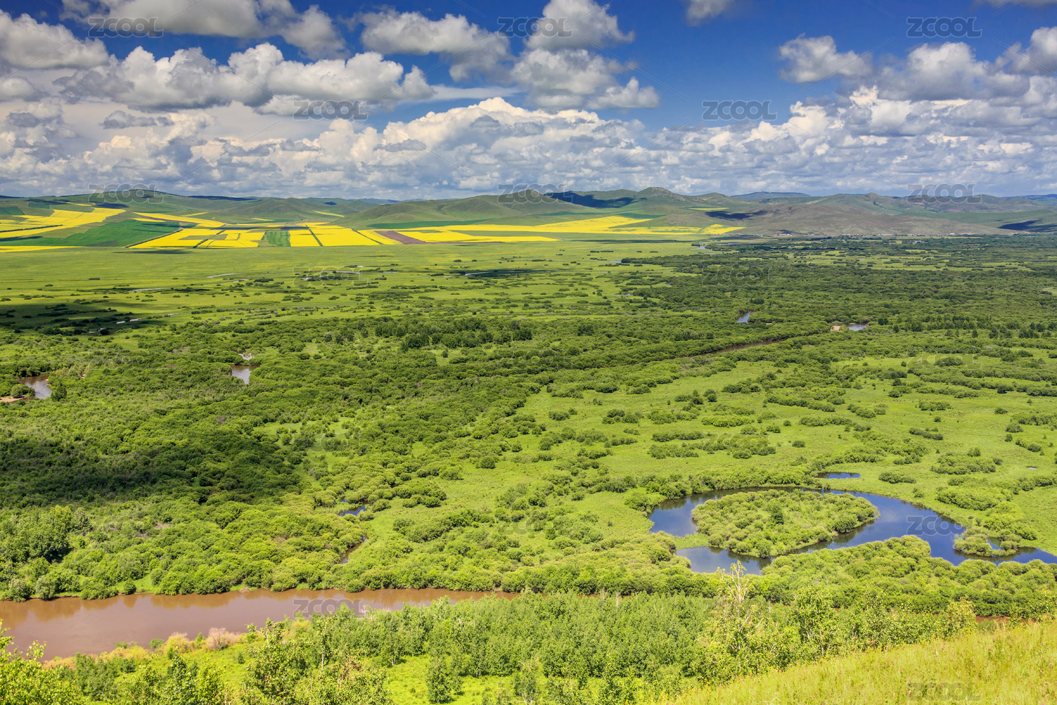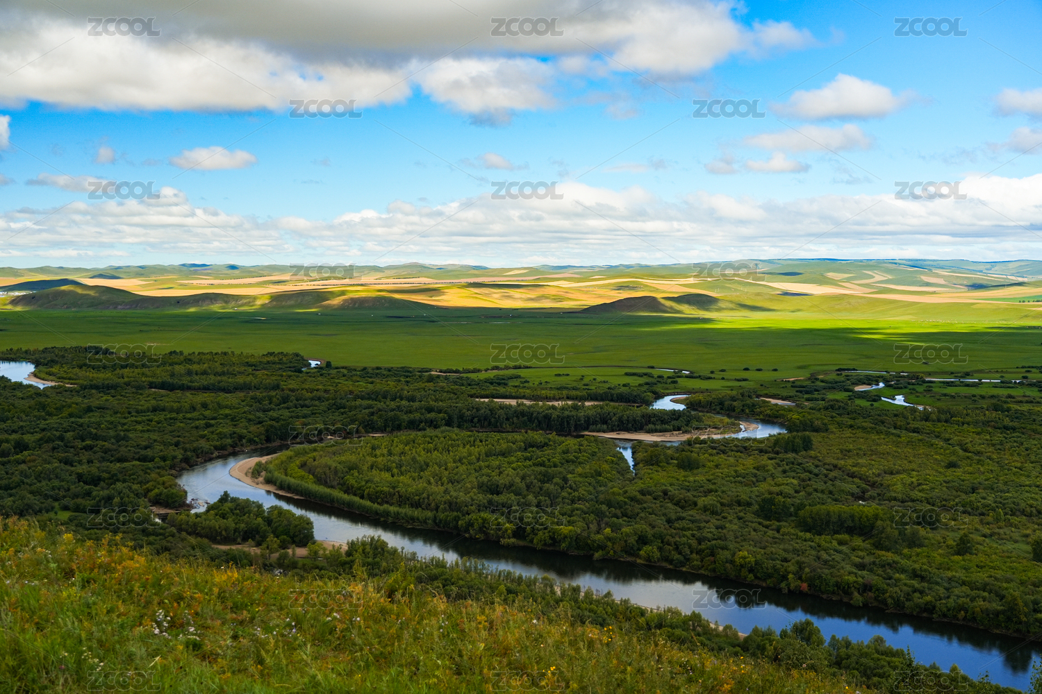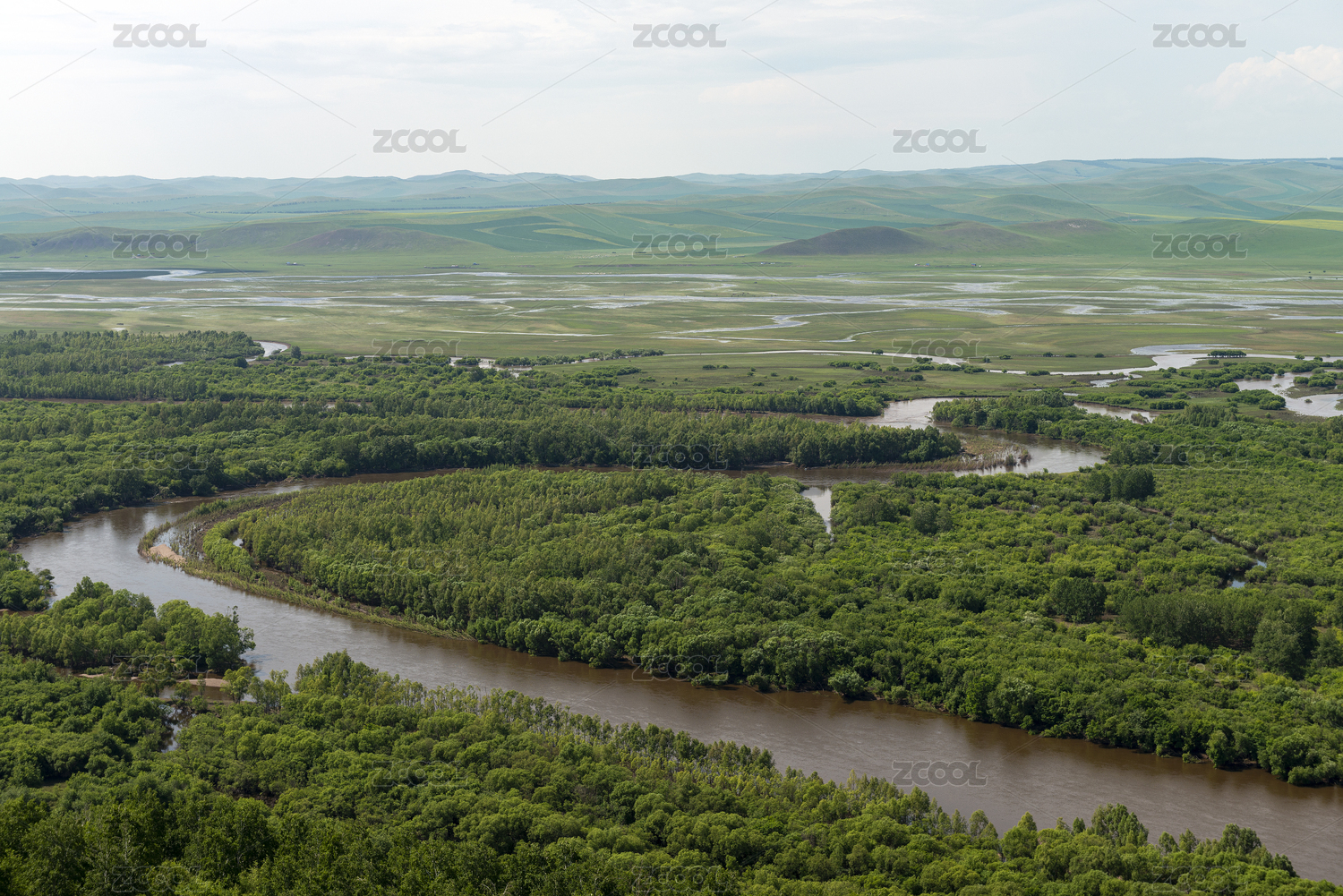中国内蒙古鄂尔多斯根河湿地全景风光