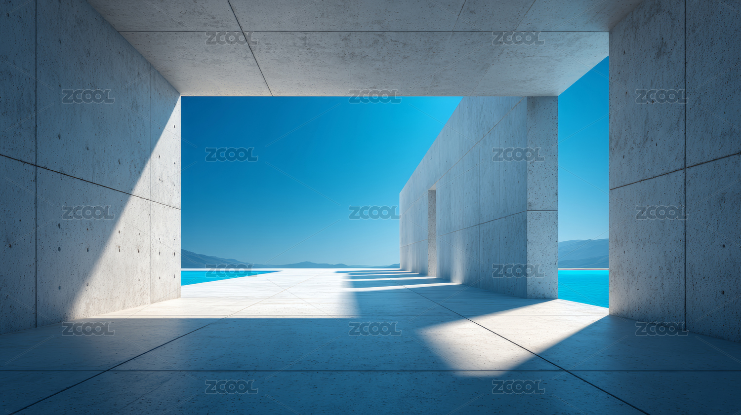 混凝土空间与明亮窗户