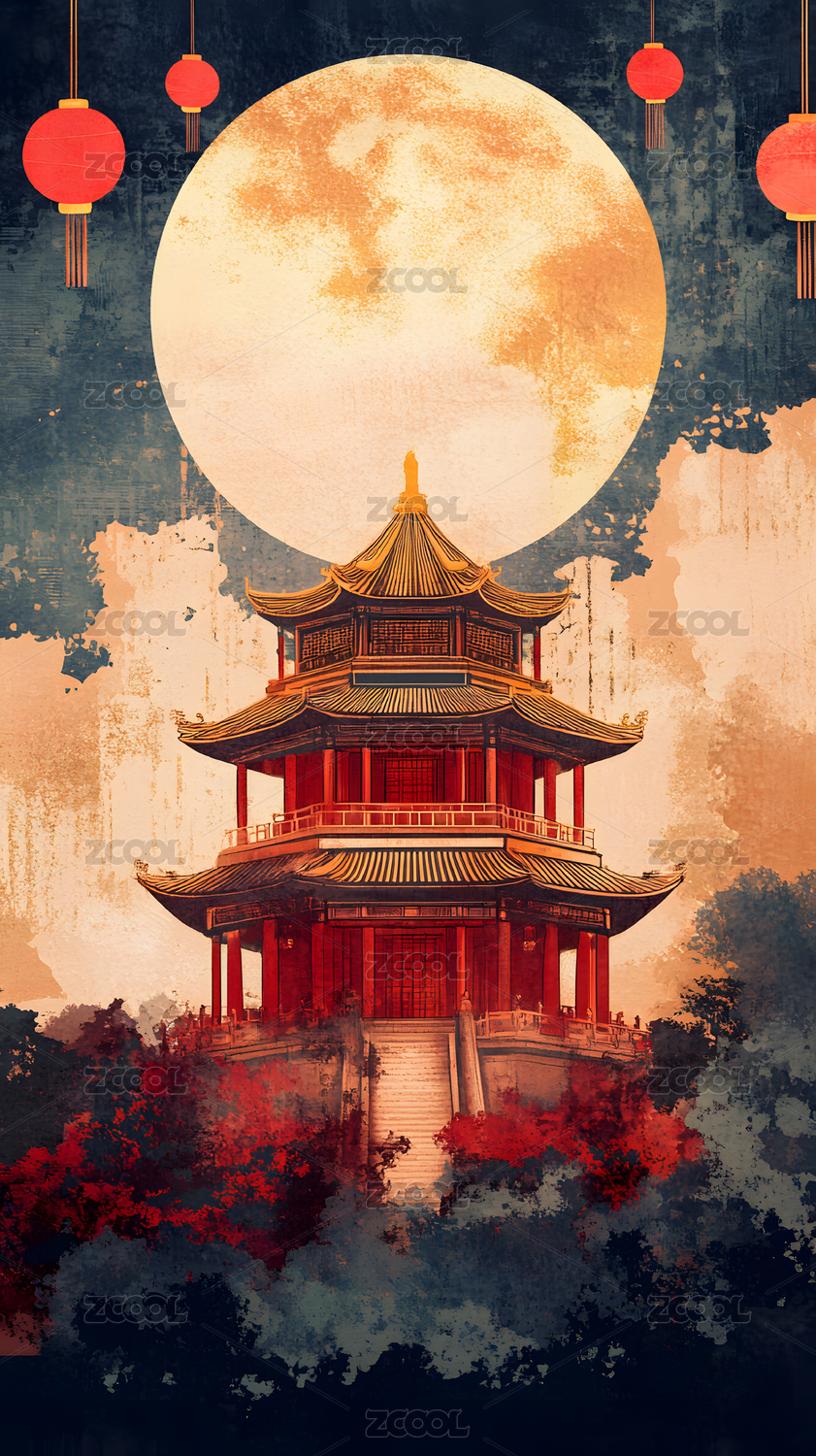 中秋元素国风场景