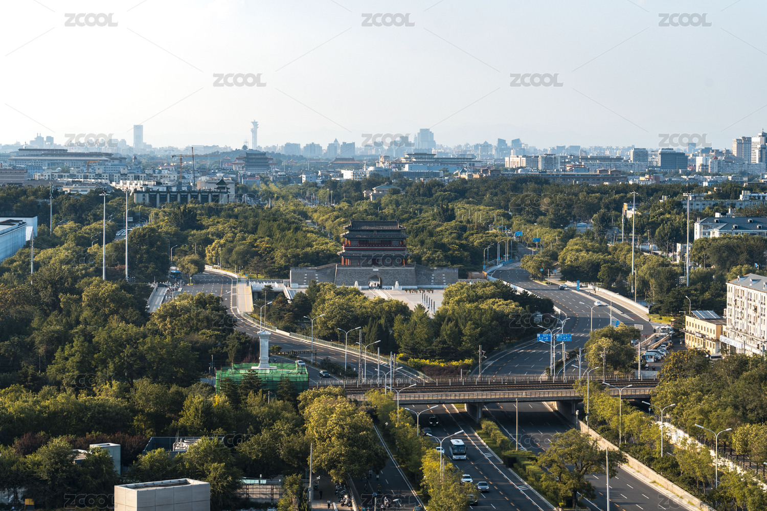 北京市前门正阳门箭楼古建筑和现代建筑远景