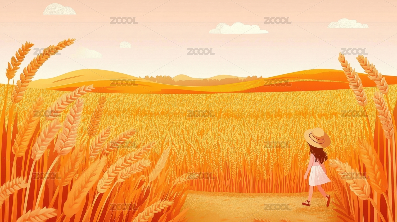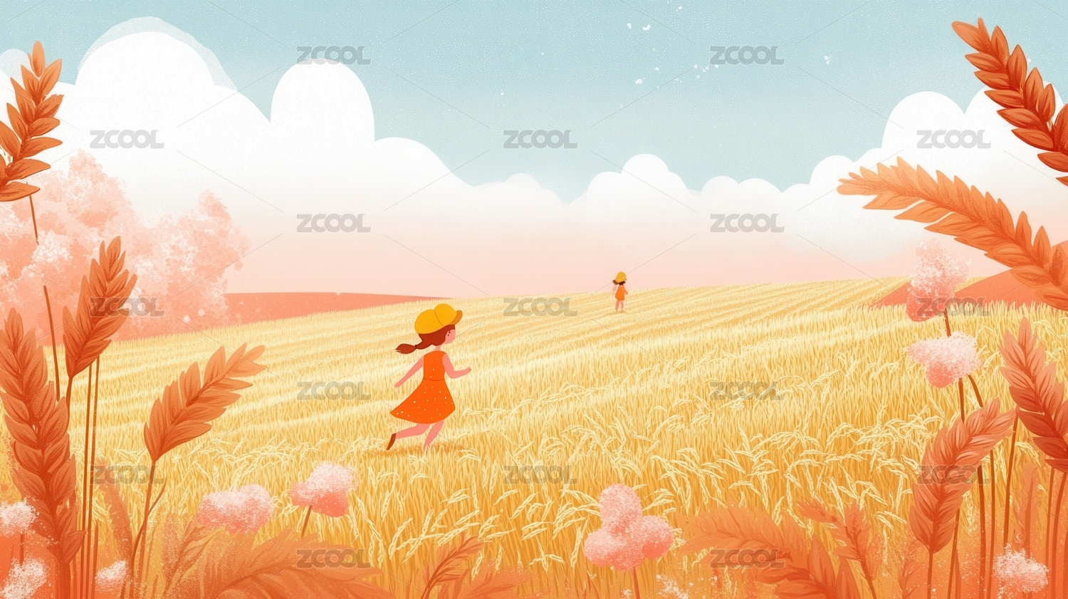秋天秋季立秋秋分自然户外风景卡通漫画插画