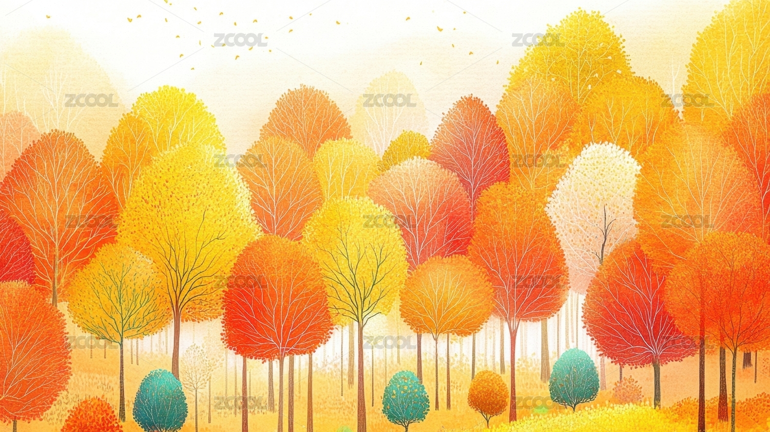 水彩森林插画