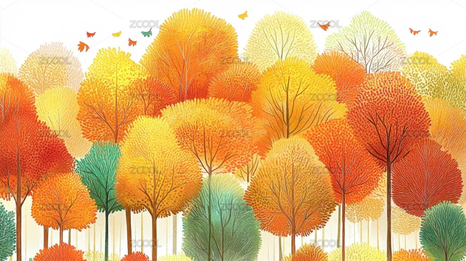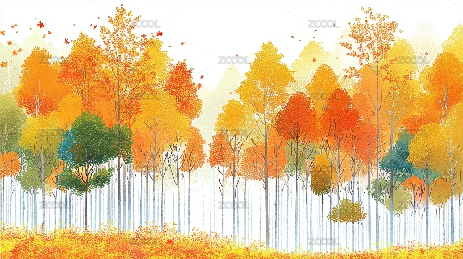 秋天户外自然风景插画