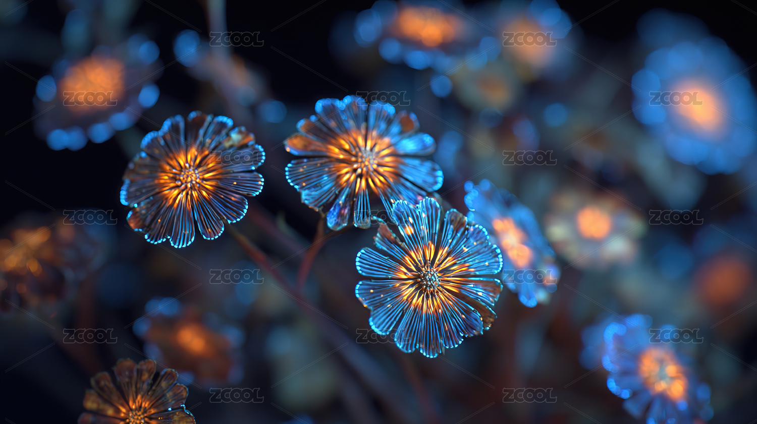 蓝色发光花卉