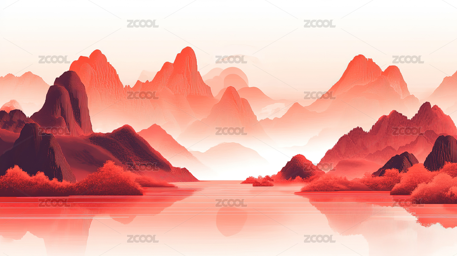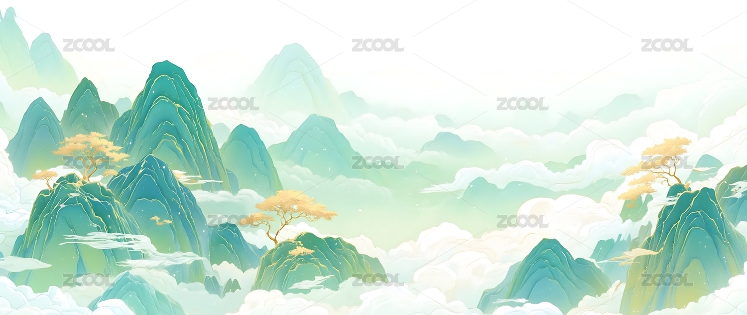 新国风古风国潮青绿山水画水墨传统背景壁纸