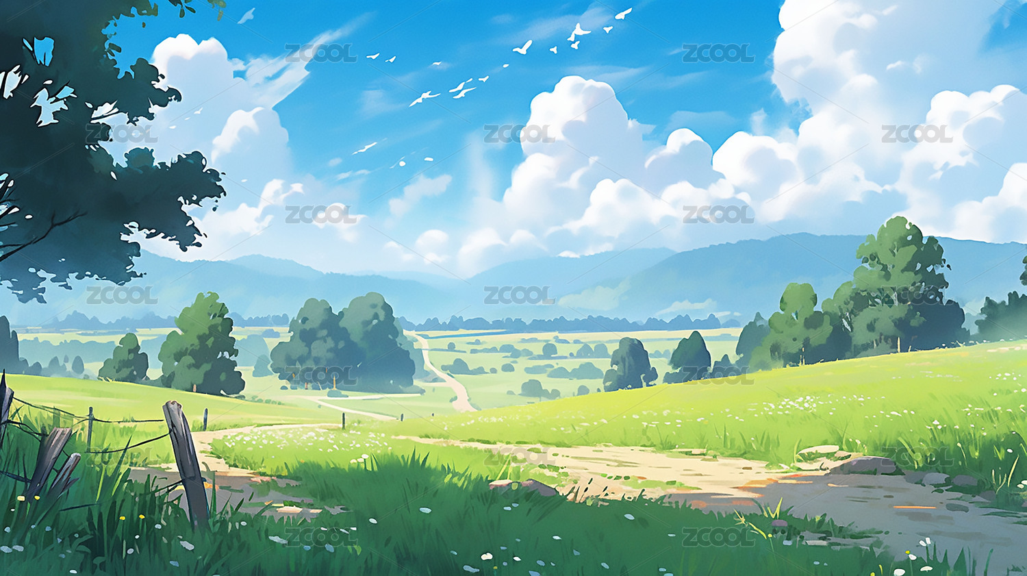 春日草甸风景插画